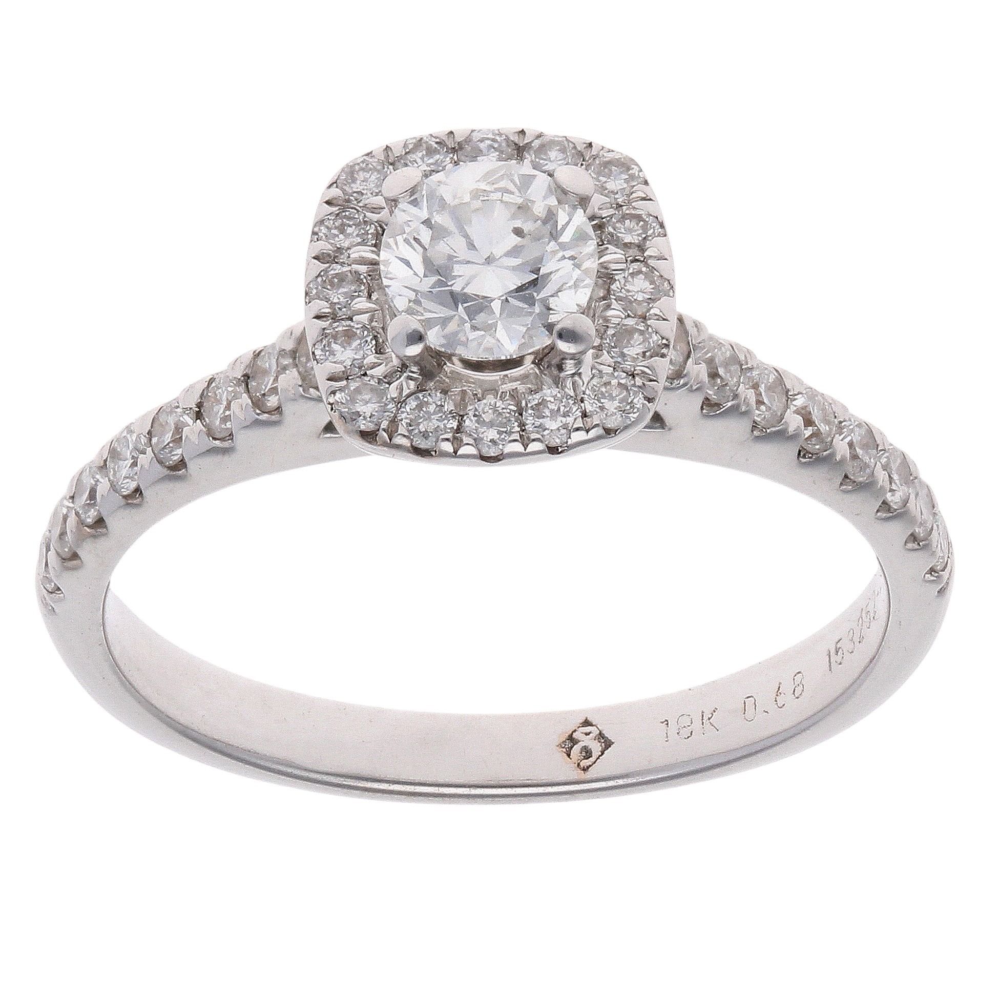 18ct White Gold 0.68ct Diamond Halo Solitaire Ring