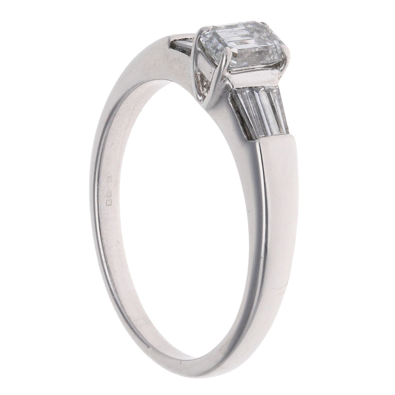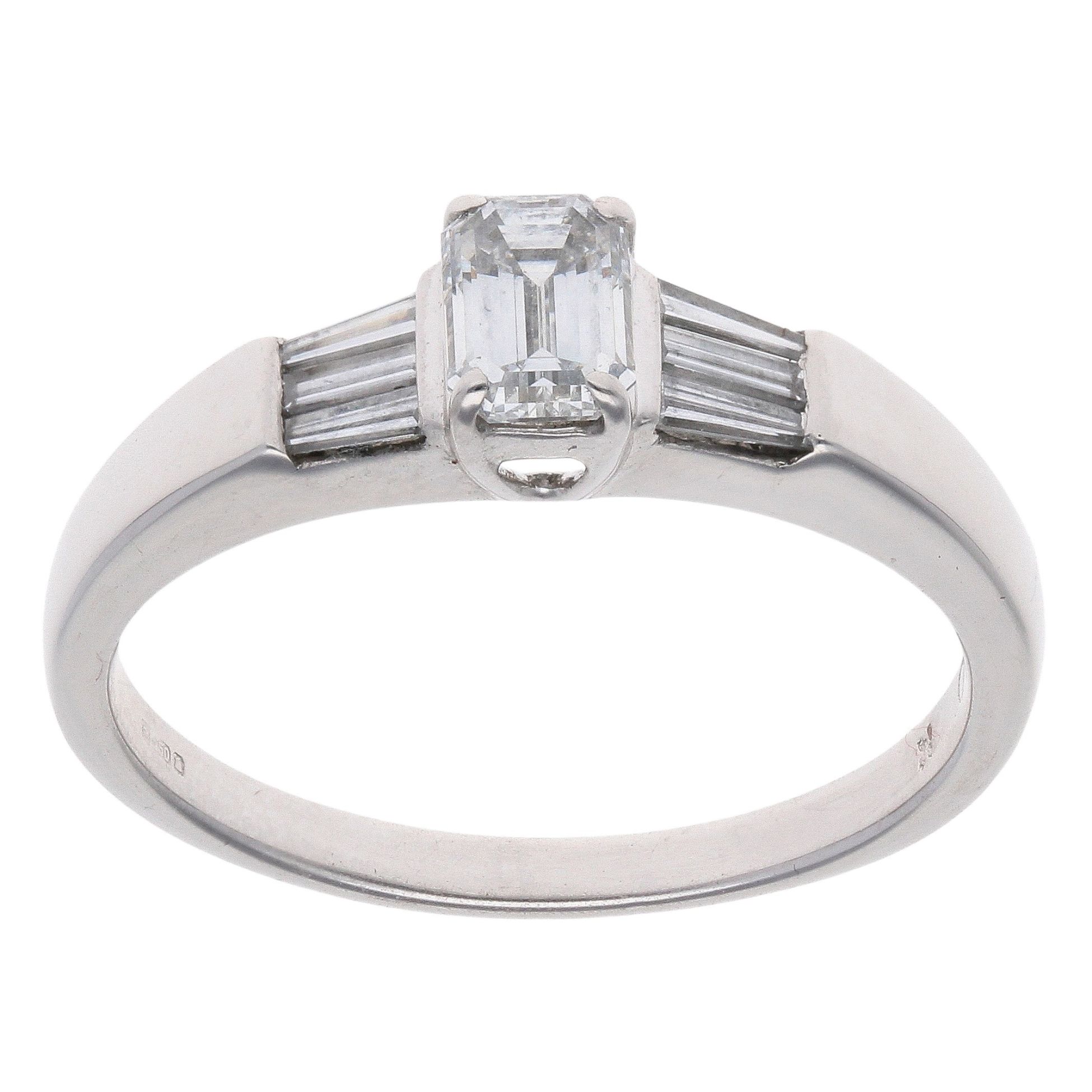 18ct White Gold 0.70ct Emerald And Baguette Cut Diamond Solitaire Ring