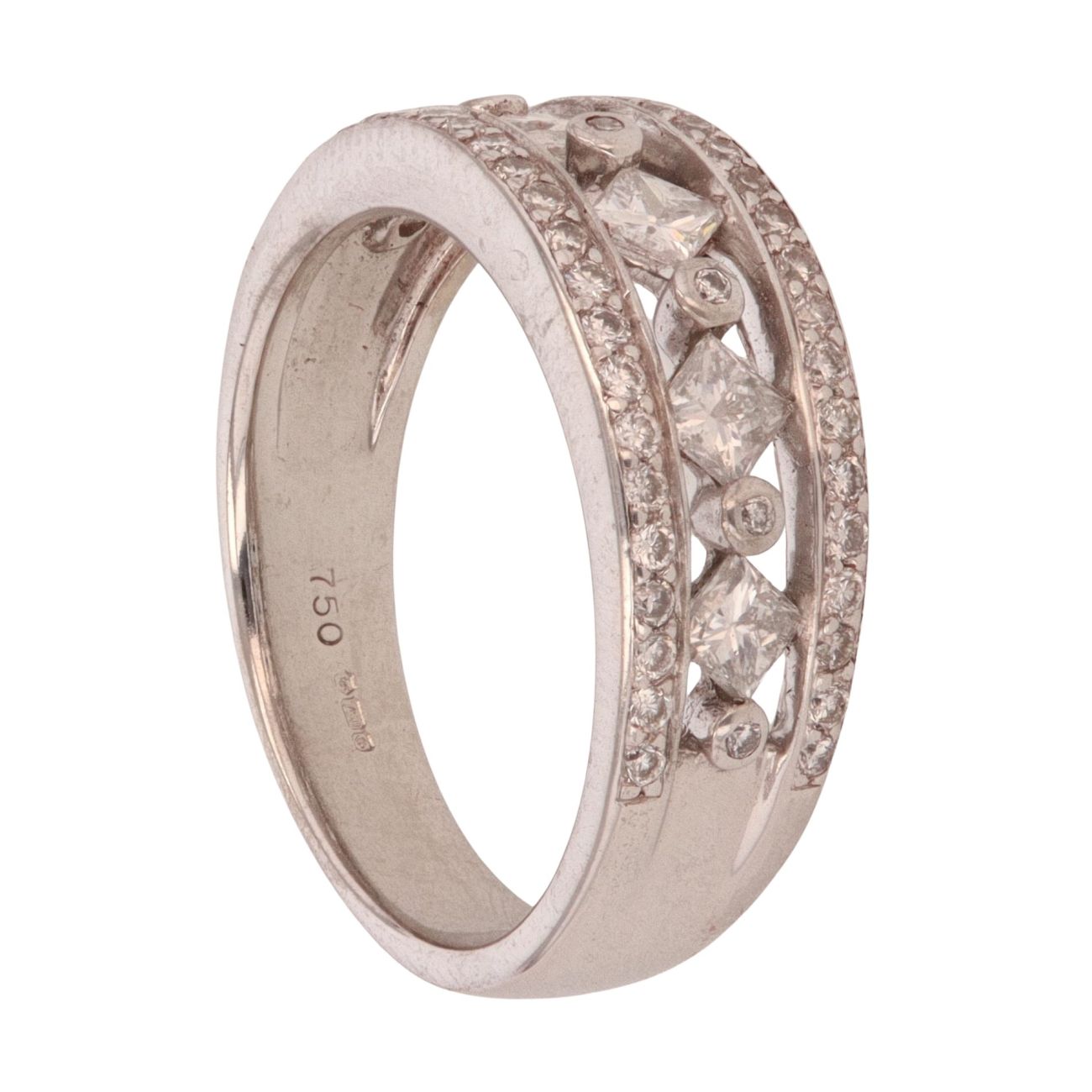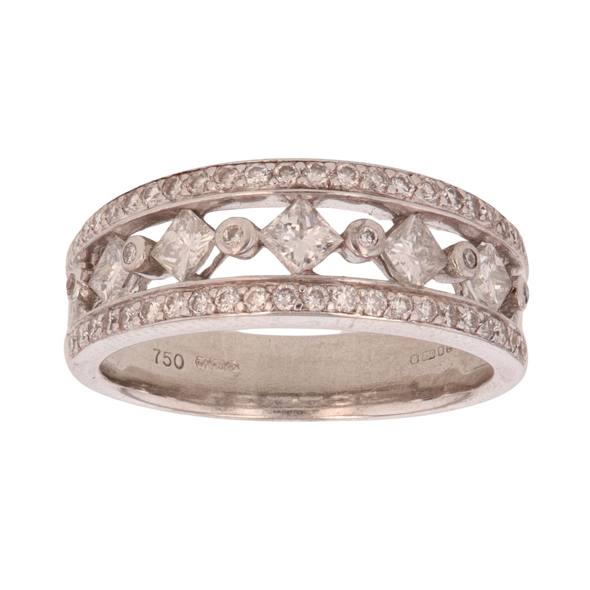 18ct White Gold 0.75ct Brilliant and Princess Cut Diamond Fancy Ring