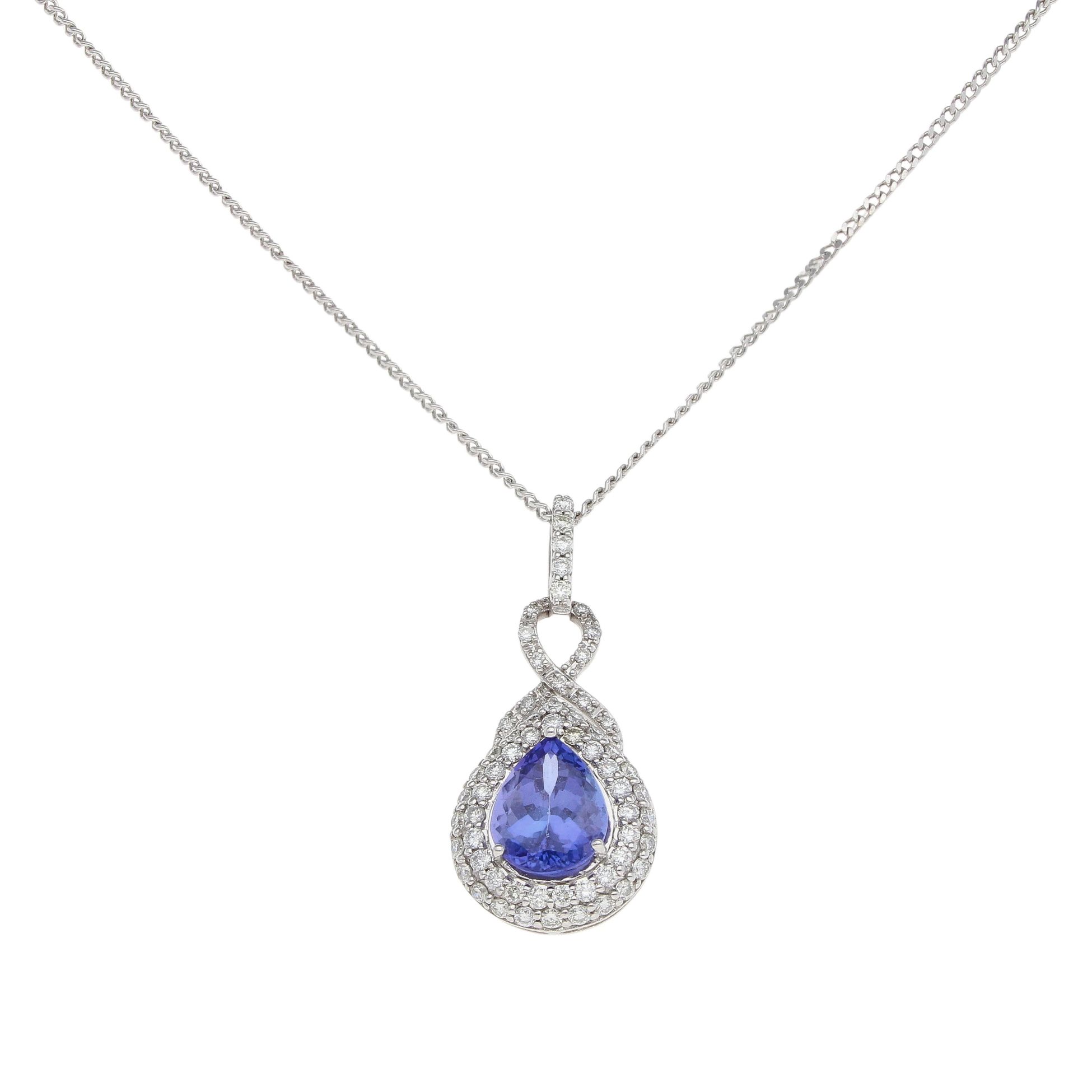 18ct White Gold 0.75ct Diamond and Tanzanite Cluster Pendant and Chain 18"