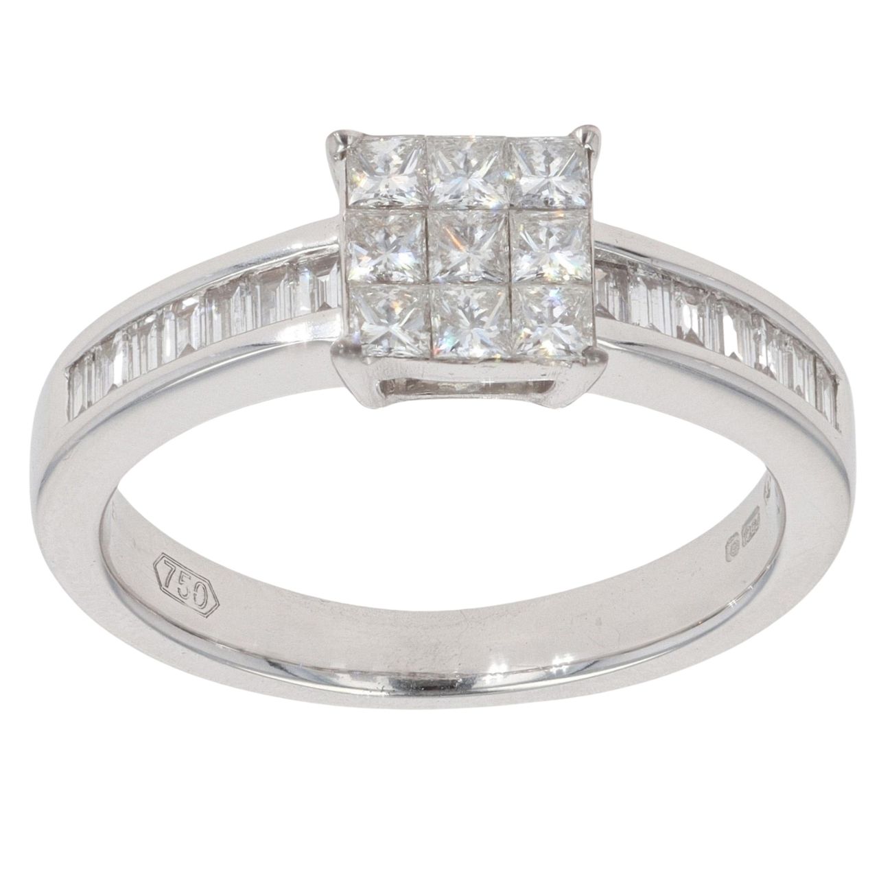 18ct White Gold 0.75ct Princess And Baguette Cut Diamond Cluster Ring