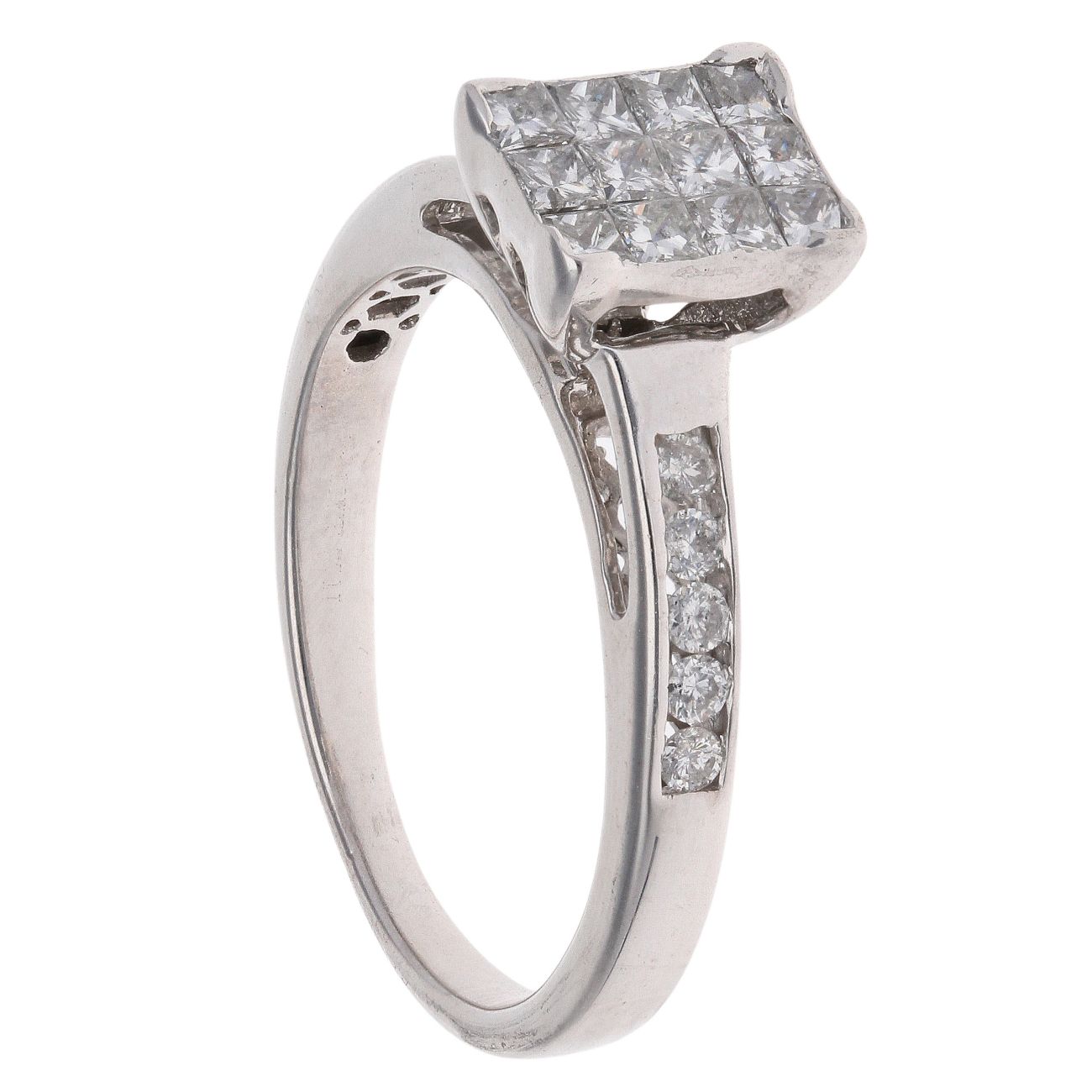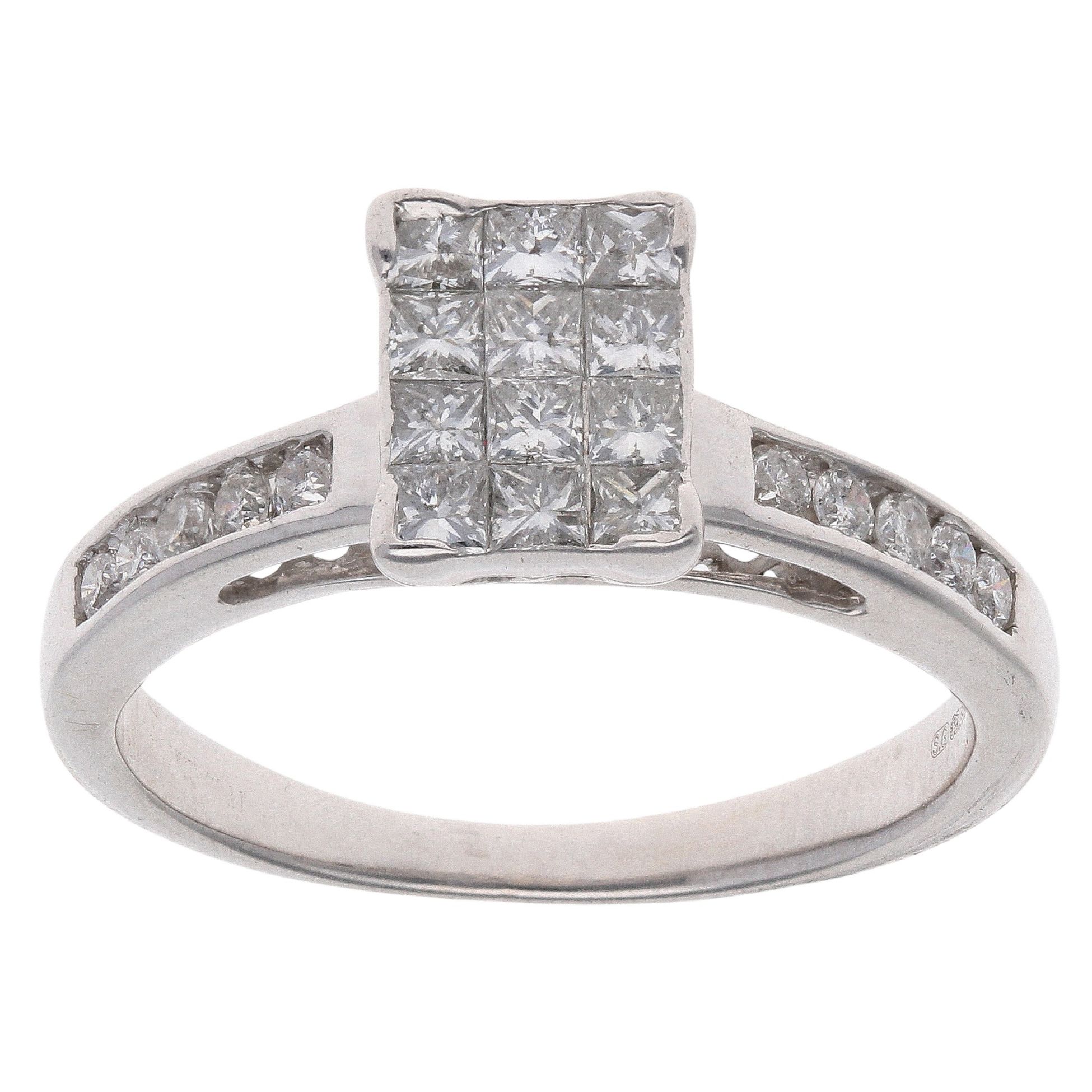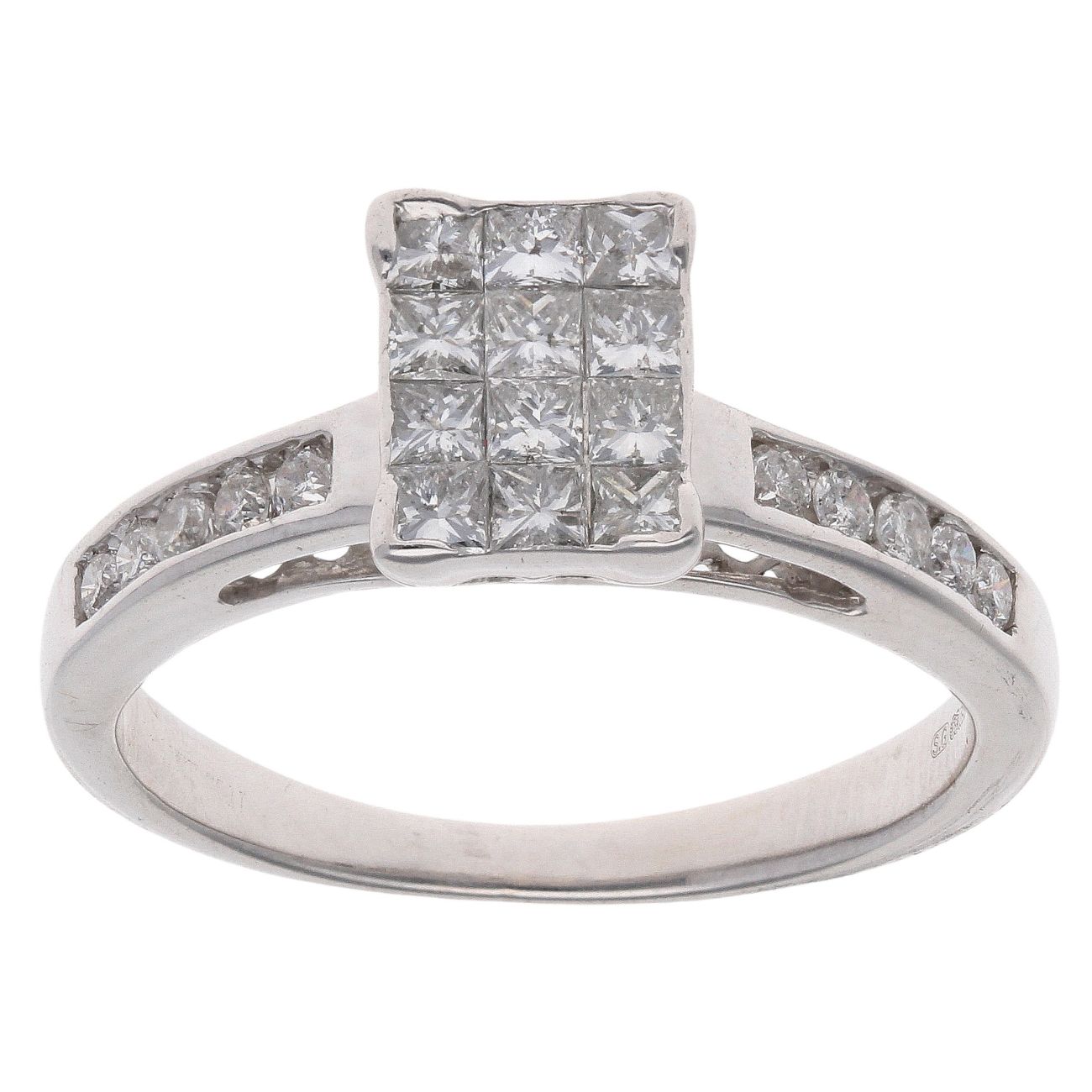 18ct White Gold 0.75ct Princess and Brilliant Cut Cluster Ring