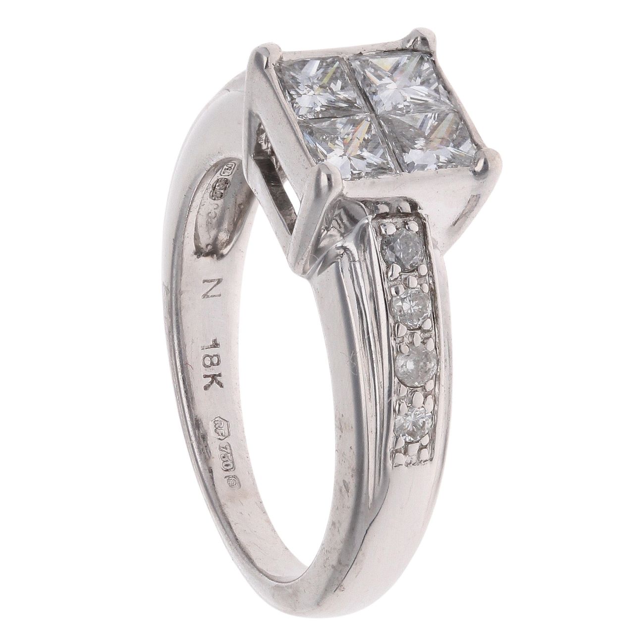 18ct White Gold 0.75ct Princess And Brilliant Cut Diamond Cluster Ring