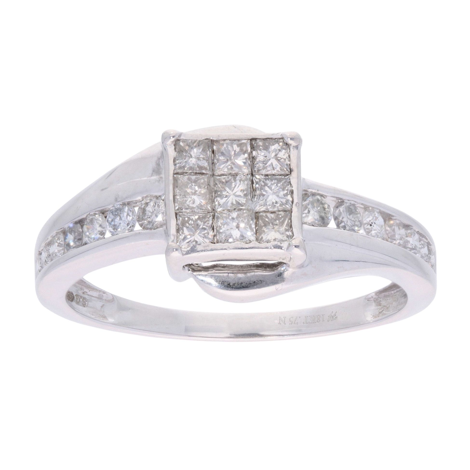 18ct White Gold 0.75ct Princess and Brilliant Cut Diamond Ring