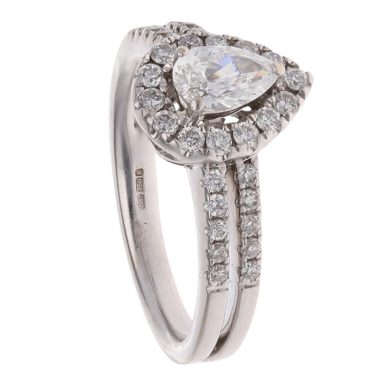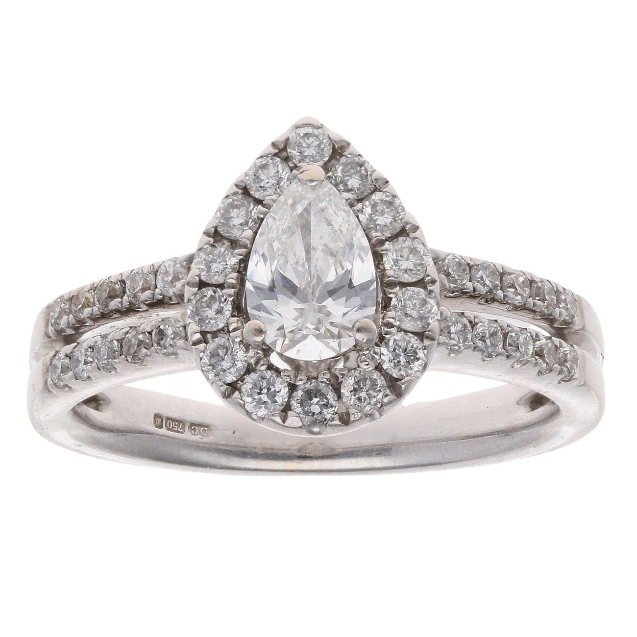18ct White Gold 0.85ct Pear And Brilliant Cut Diamond Cluster Ring