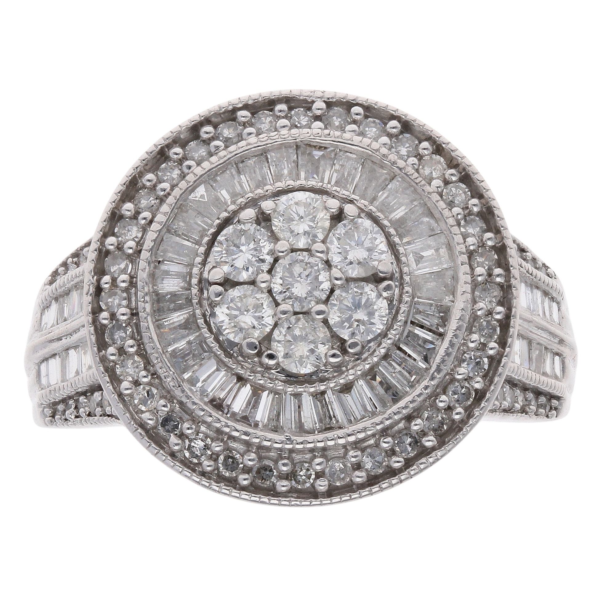 18ct White Gold 1.00ct Brilliant And Baguette Cut Diamond Cluster Ring