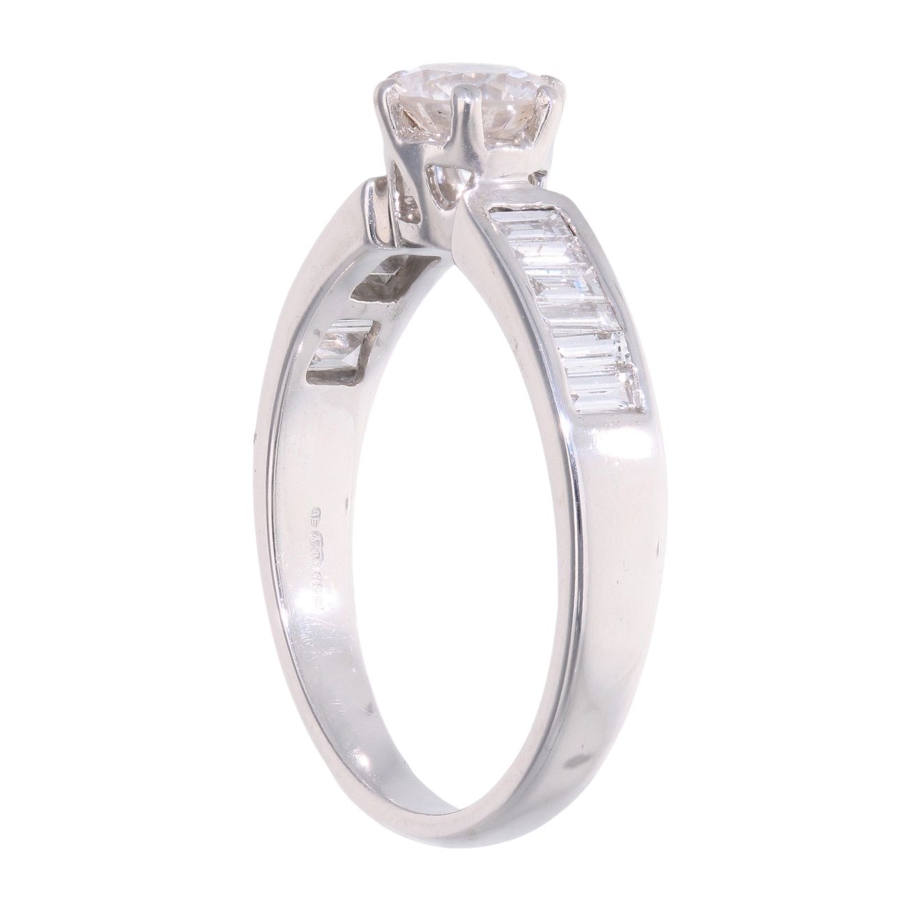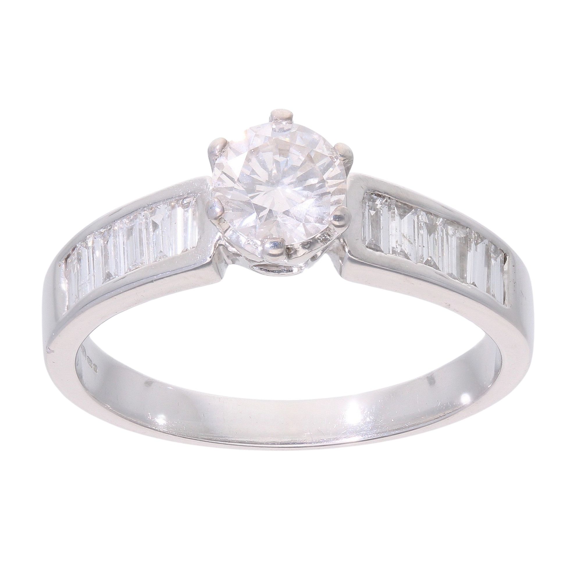 18ct White Gold 1.00ct Brilliant and Baguette Cut Diamond Solitaire Ring