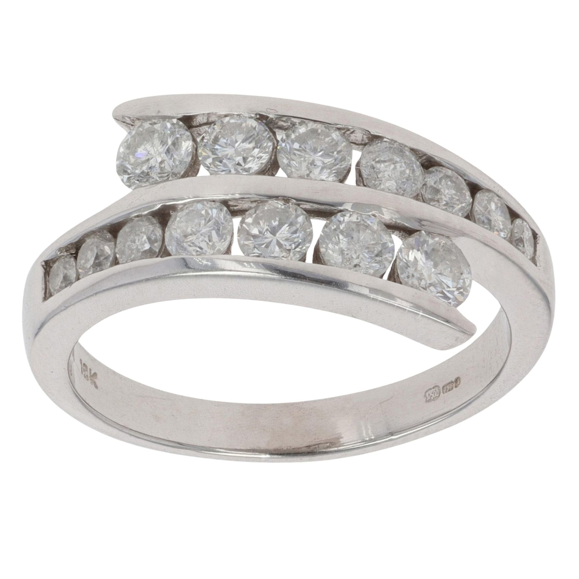 18ct White Gold 1.00ct Brilliant Cut Diamond Crossover Ring