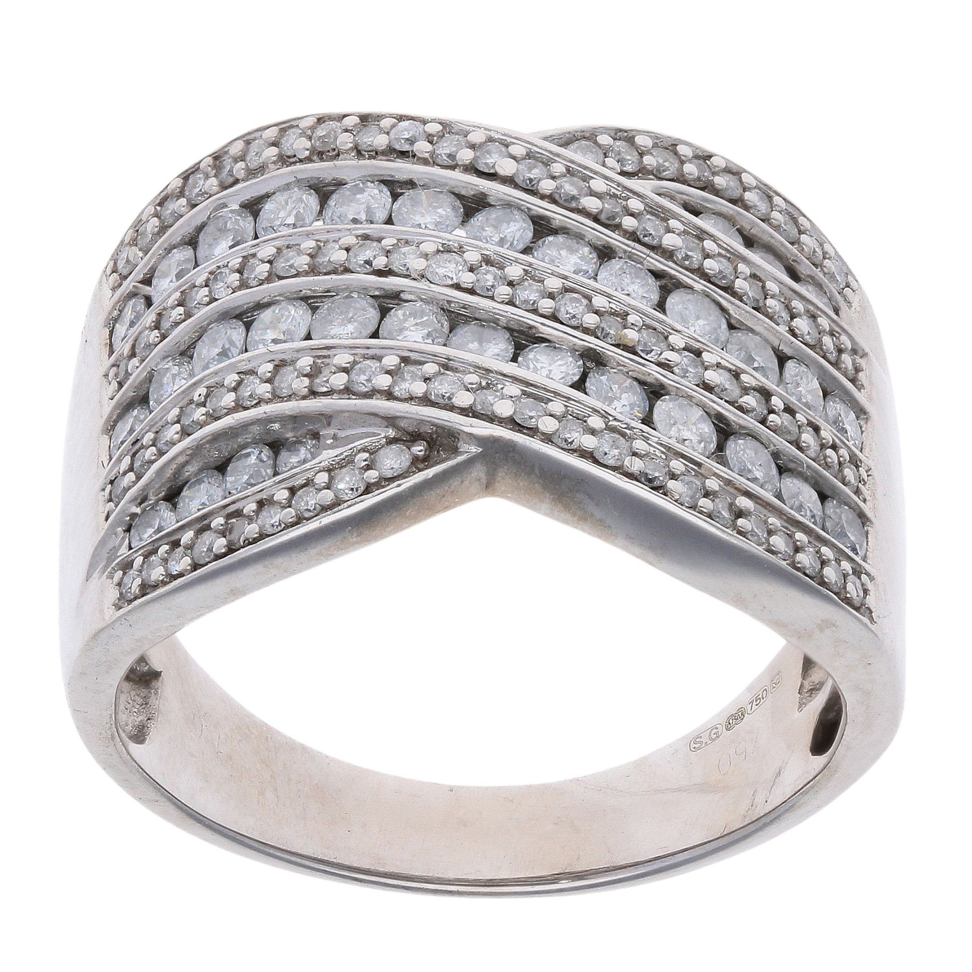 18ct White Gold 1.00ct Brilliant Cut Diamond Five Row Ring