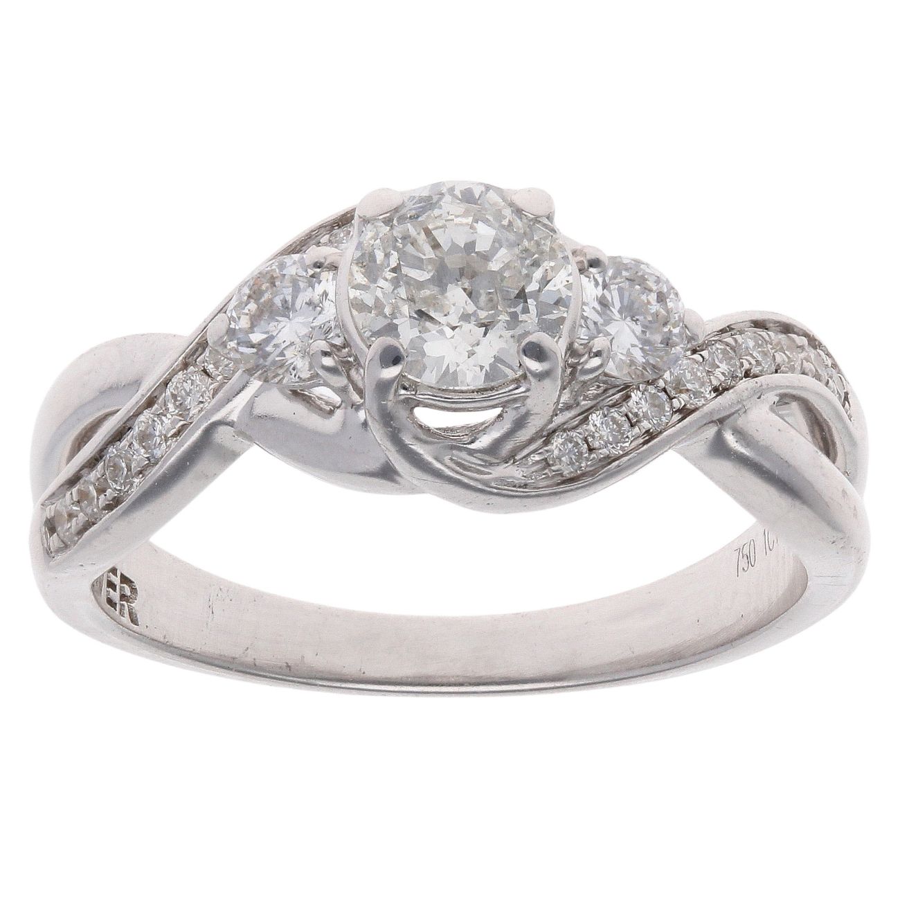 18ct White Gold 1.00ct Brilliant Cut Diamond Trilogy Ring