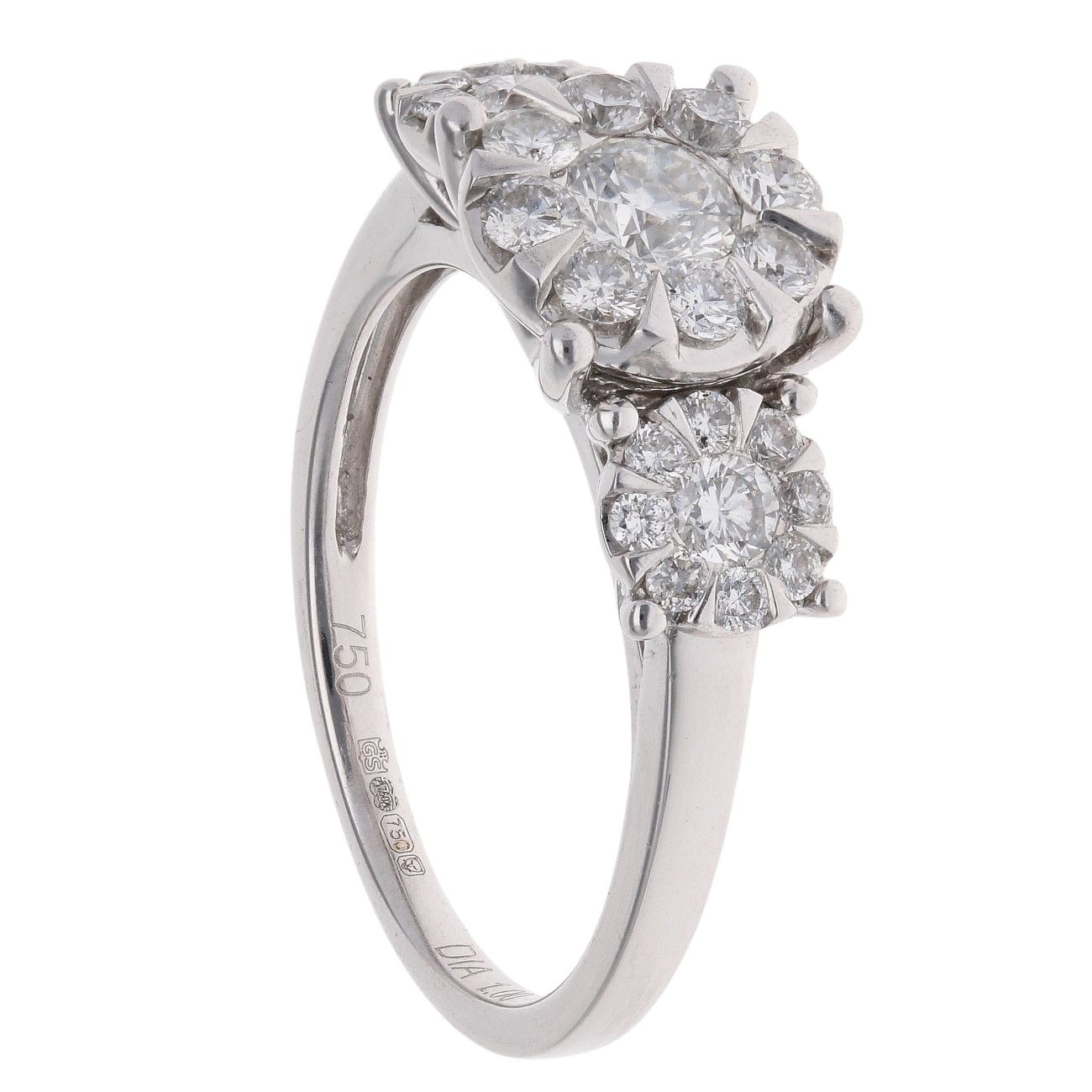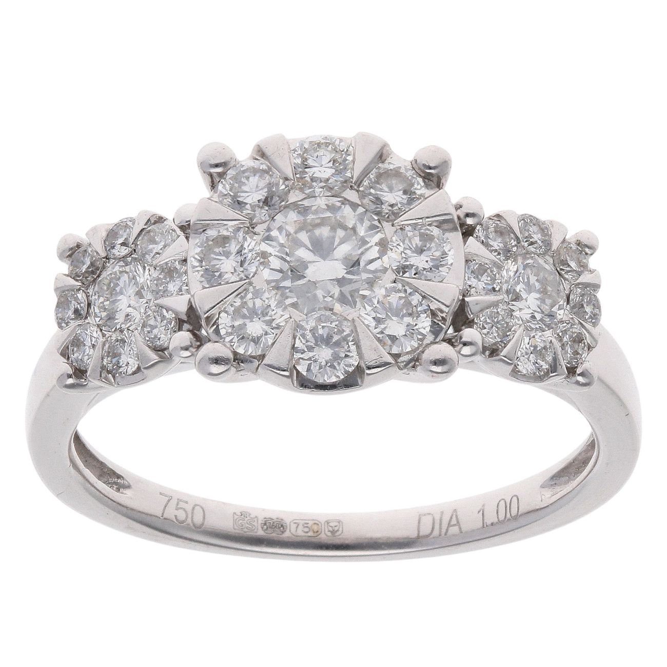 18ct White Gold 1.00ct Brilliant Cut Diamond Triple Cluster Ring