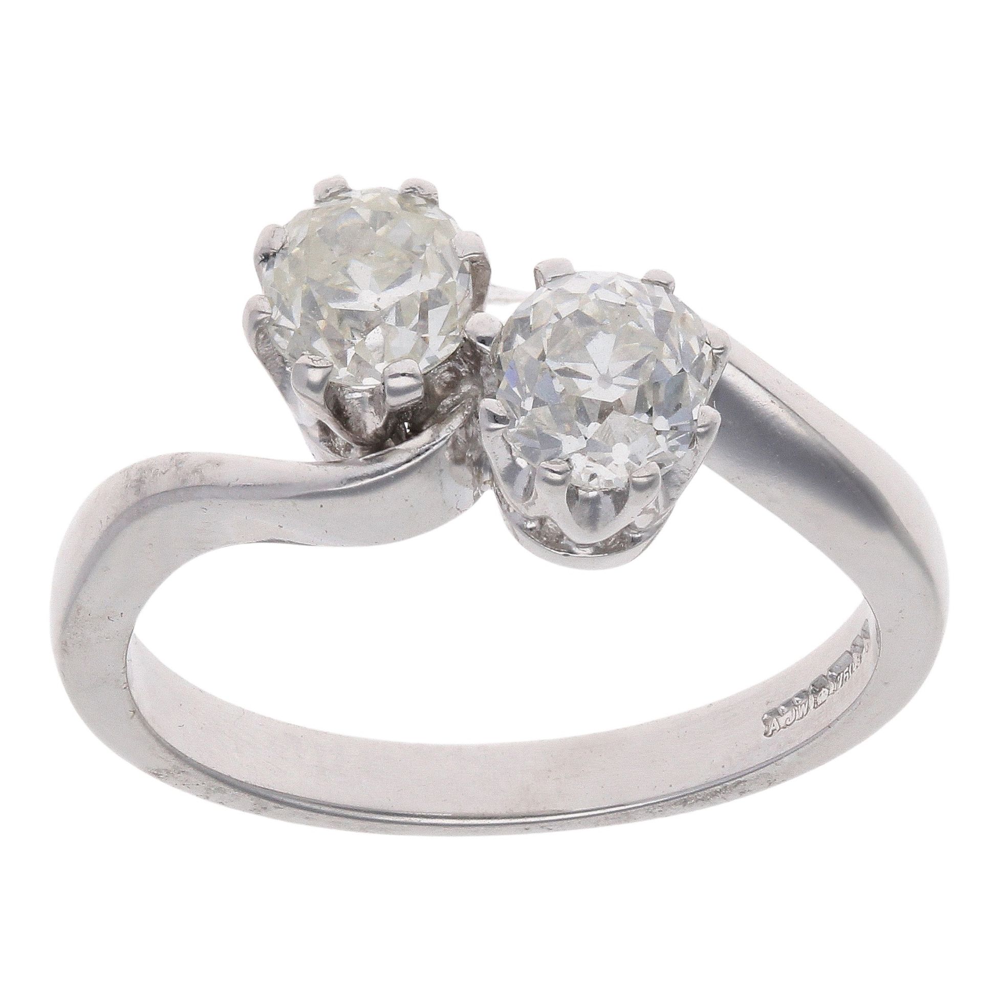 18ct White Gold 1.00ct Brilliant Cut Diamond Two Stone Twist Ring