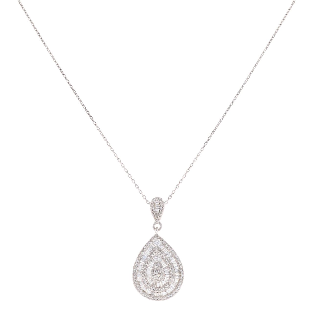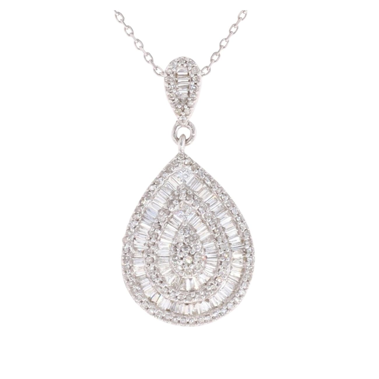 18ct White Gold 1.00ct Diamond Cluster Pear Pendant and Chain 20"