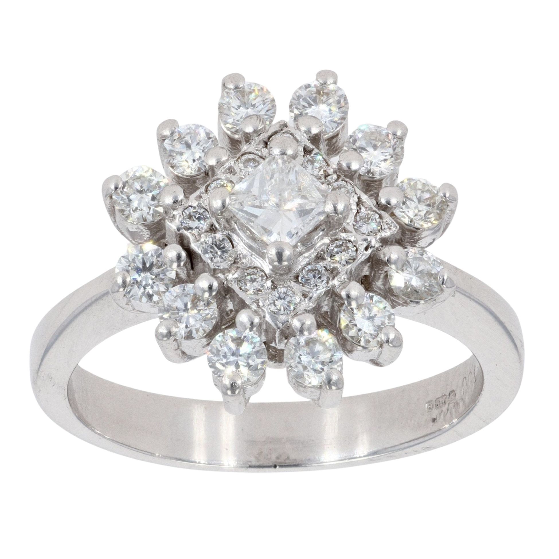 18ct White Gold 1.00ct Diamond Princess Cut Cluster Ring