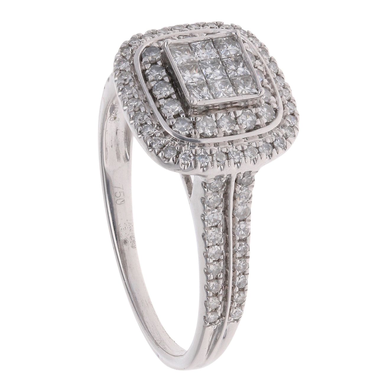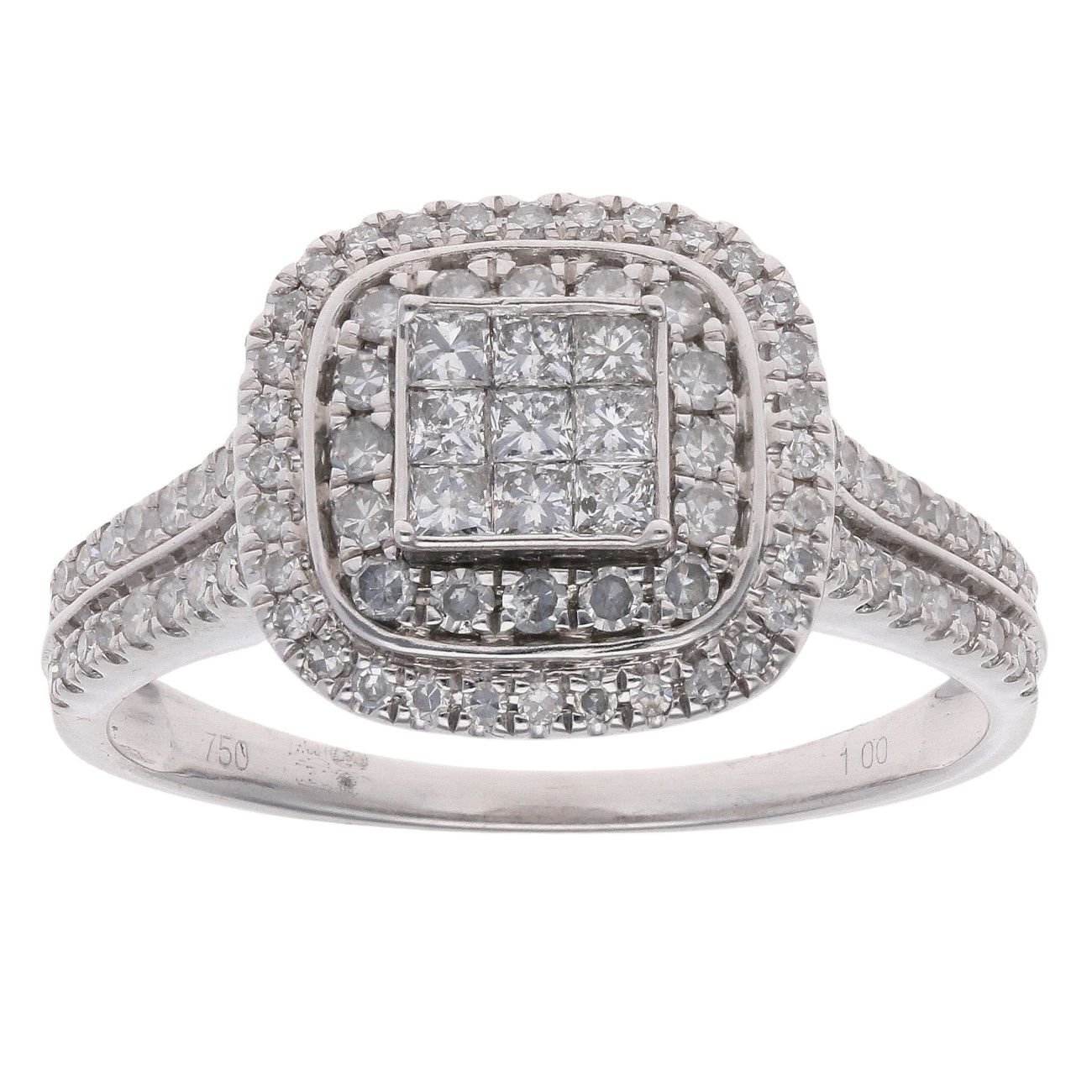 18ct White Gold 1.00ct Princess and Brilliant Cut Diamond Cluster Ring
