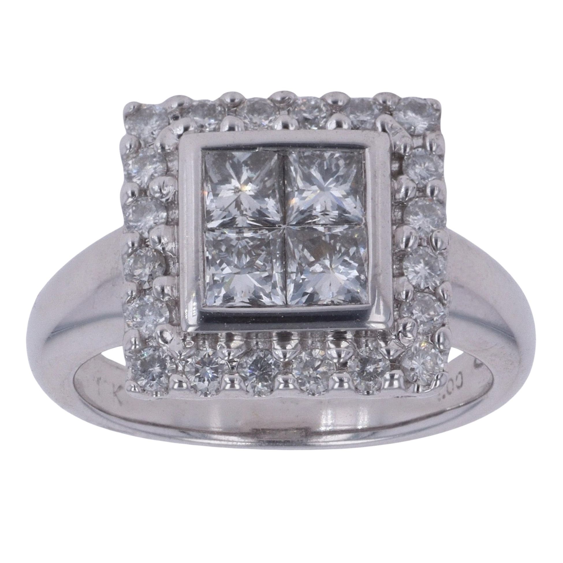 18ct White Gold 1.00ct Princess And Brilliant Cut Diamond Cluster Ring