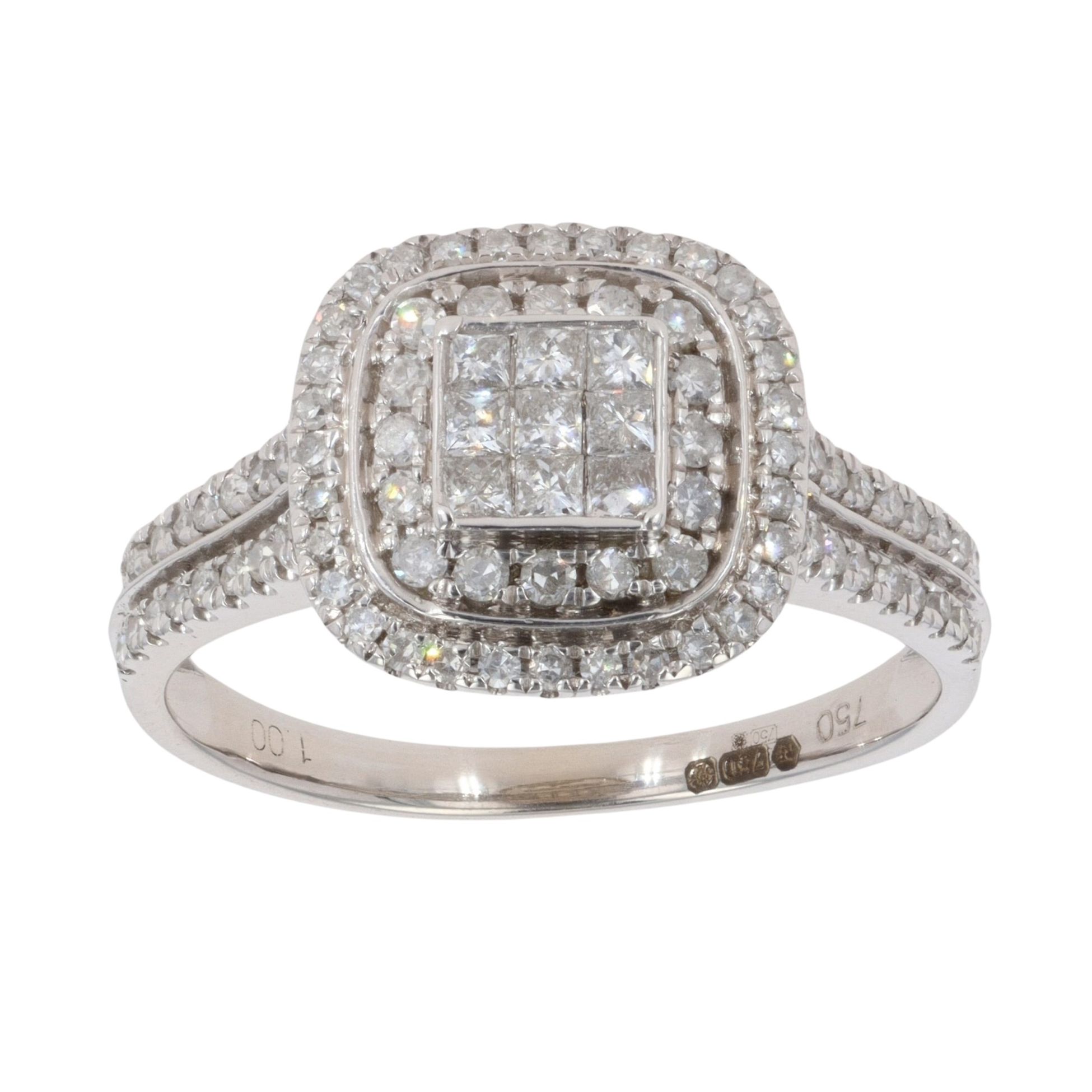 18ct White Gold 1.00ct Princess And Brilliant Cut Diamond Cluster Ring