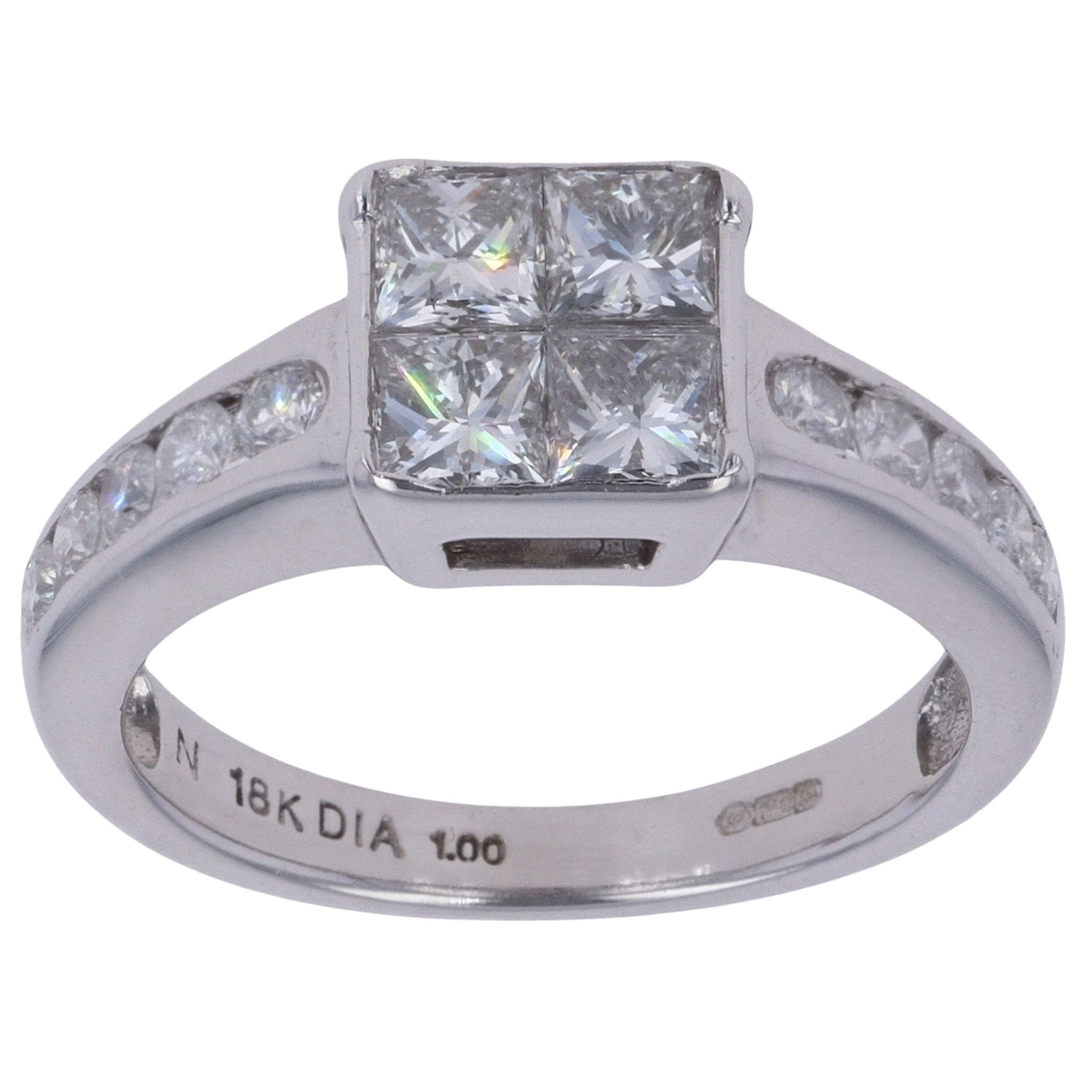 18ct White Gold 1.00ct Princess Cut Diamond Cluster Ring