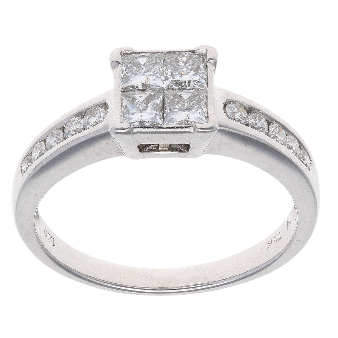 18ct White Gold 1.00ct Princess Cut Diamond Cluster Ring
