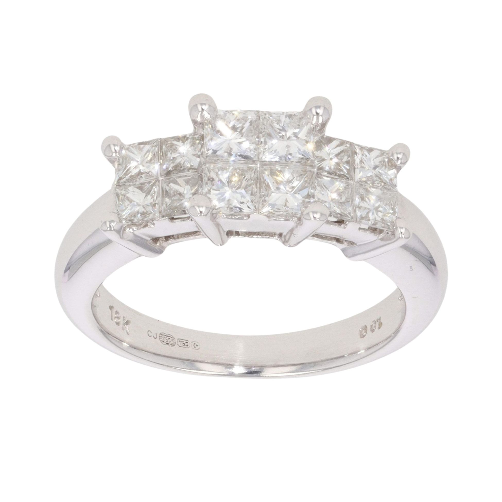 18ct White Gold 1.00ct Princess Cut Diamond Cluster Ring