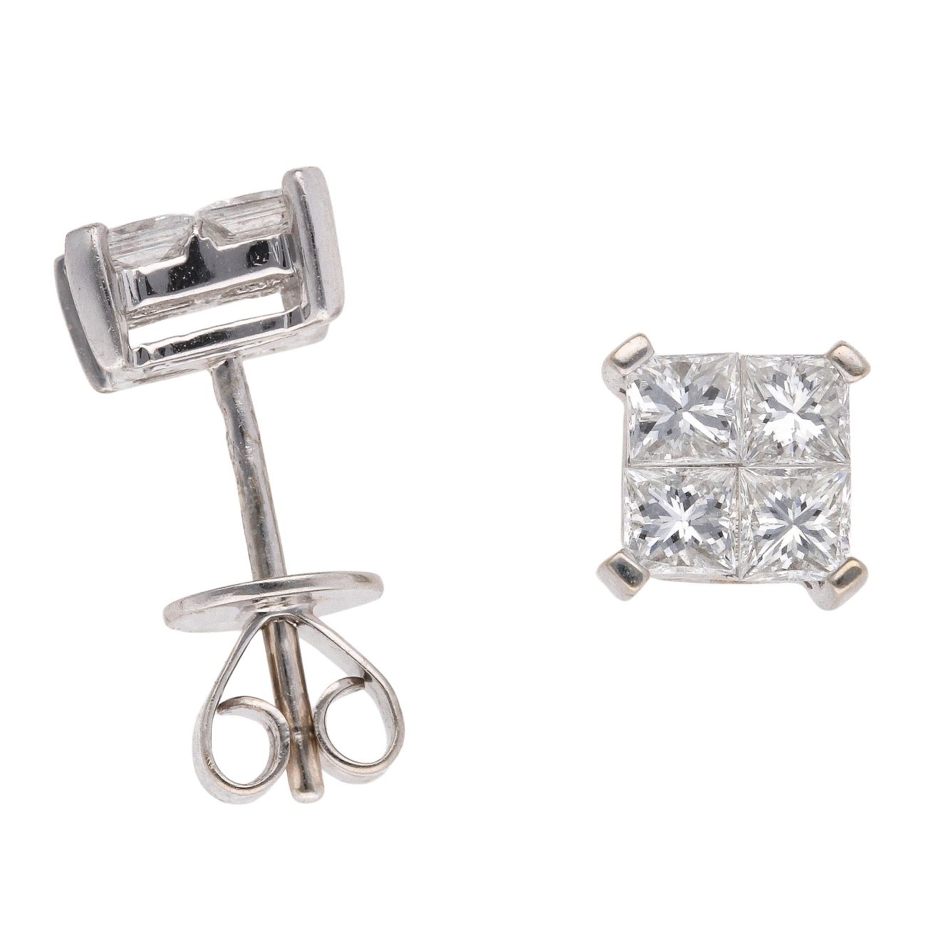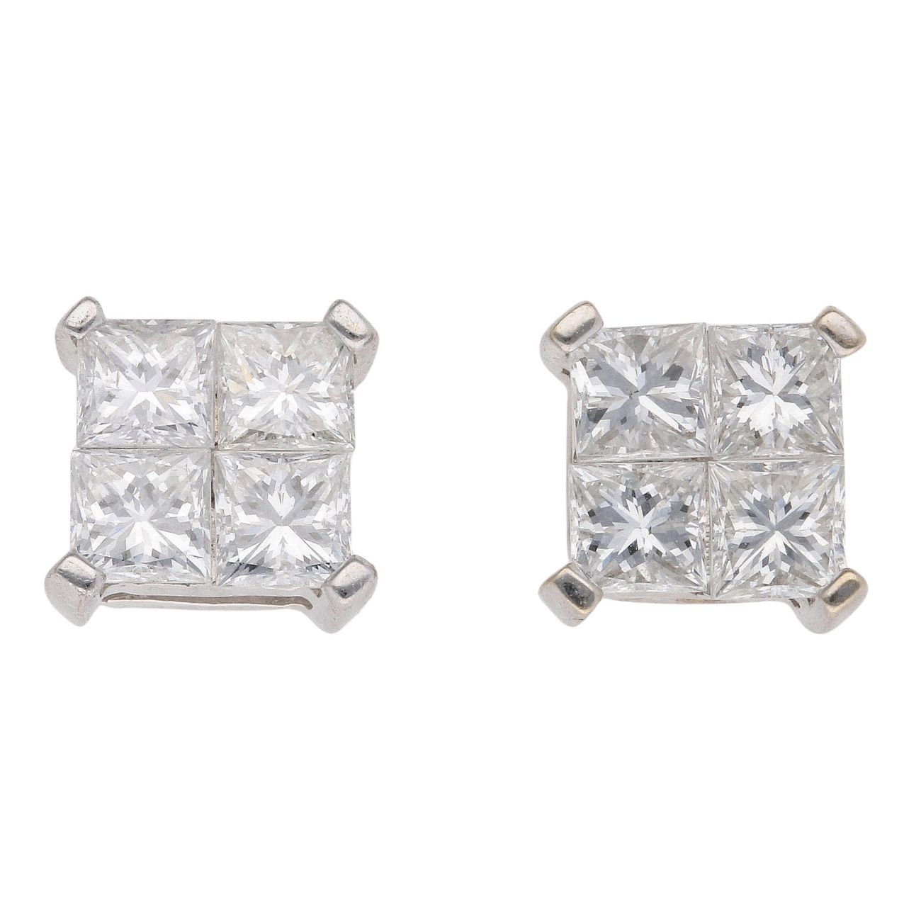 18ct White Gold 1.00ct Princess Cut Diamond Stud Cluster Earrings