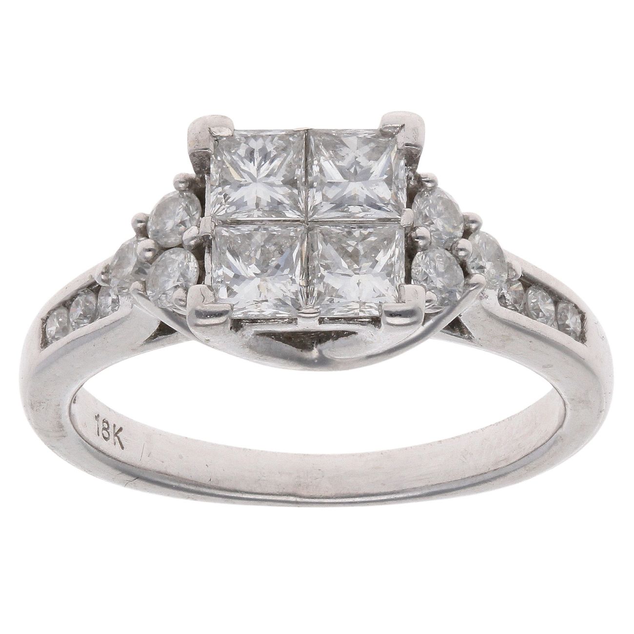 18ct White Gold 1.15ct Princess And Brilliant Cut Diamond Cluster Ring