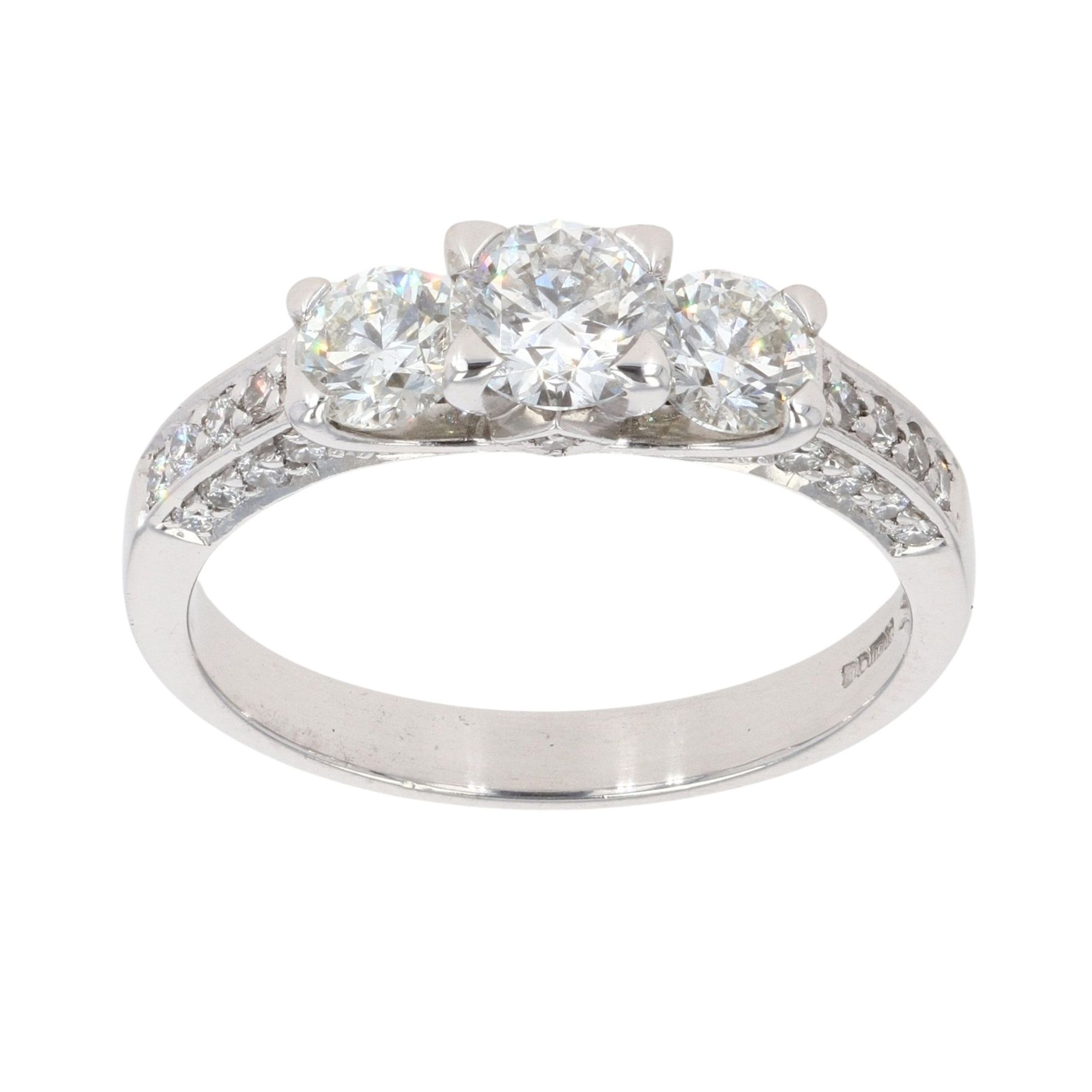 18ct White Gold 1.29ct Brilliant Cut Diamond Trilogy Ring