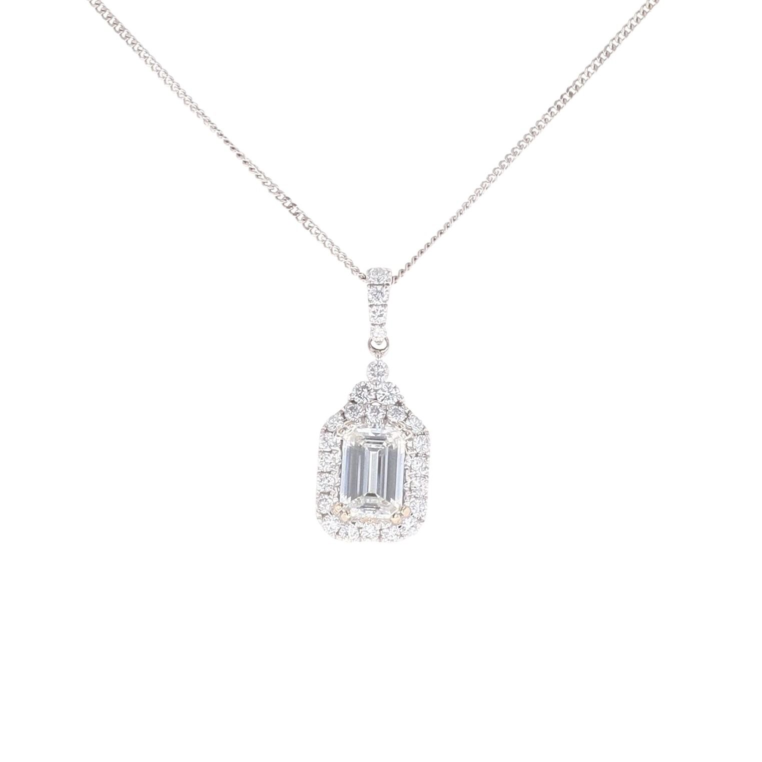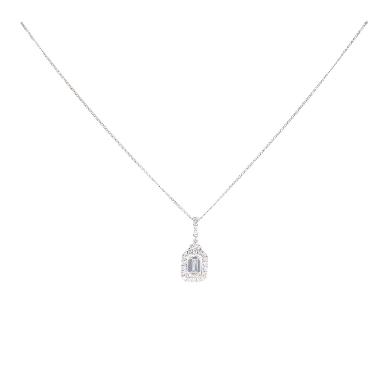 18ct White Gold 1.30ct Emerald And Brilliant Cut Diamond Pendant And Chain 16"