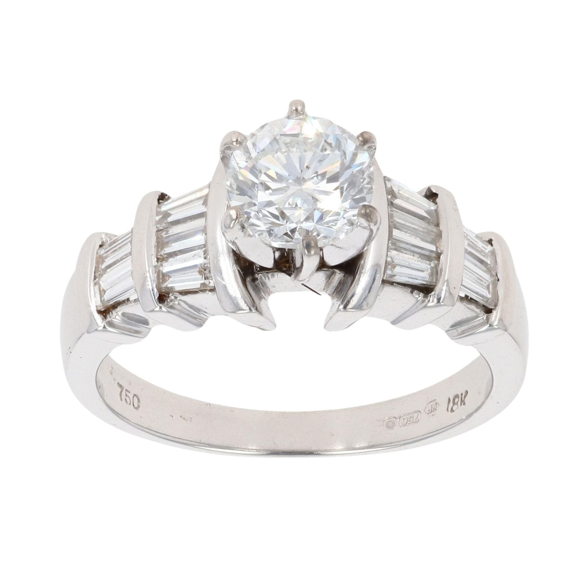 18ct White Gold 1.50ct Baguette And Brilliant Cut Diamond Solitaire Ring