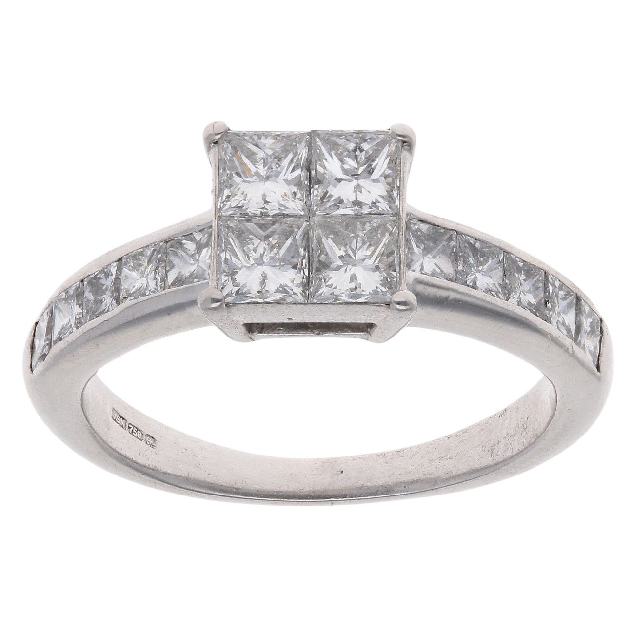 18ct White Gold 1.50ct Princess Cut Diamond Cluster Ring