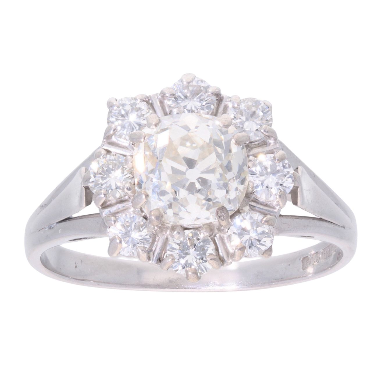 18ct White Gold 1.75ct Old And Brilliant Cut Diamond Cluster Ring