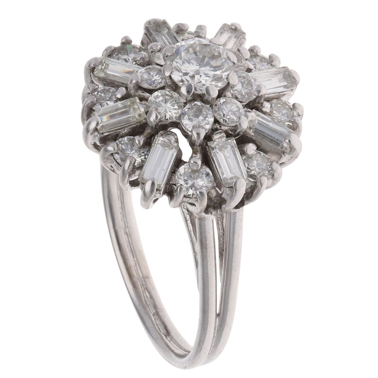 18ct White Gold 1.80ct Brilliant And Baguette Cut Diamond Cluster Ring