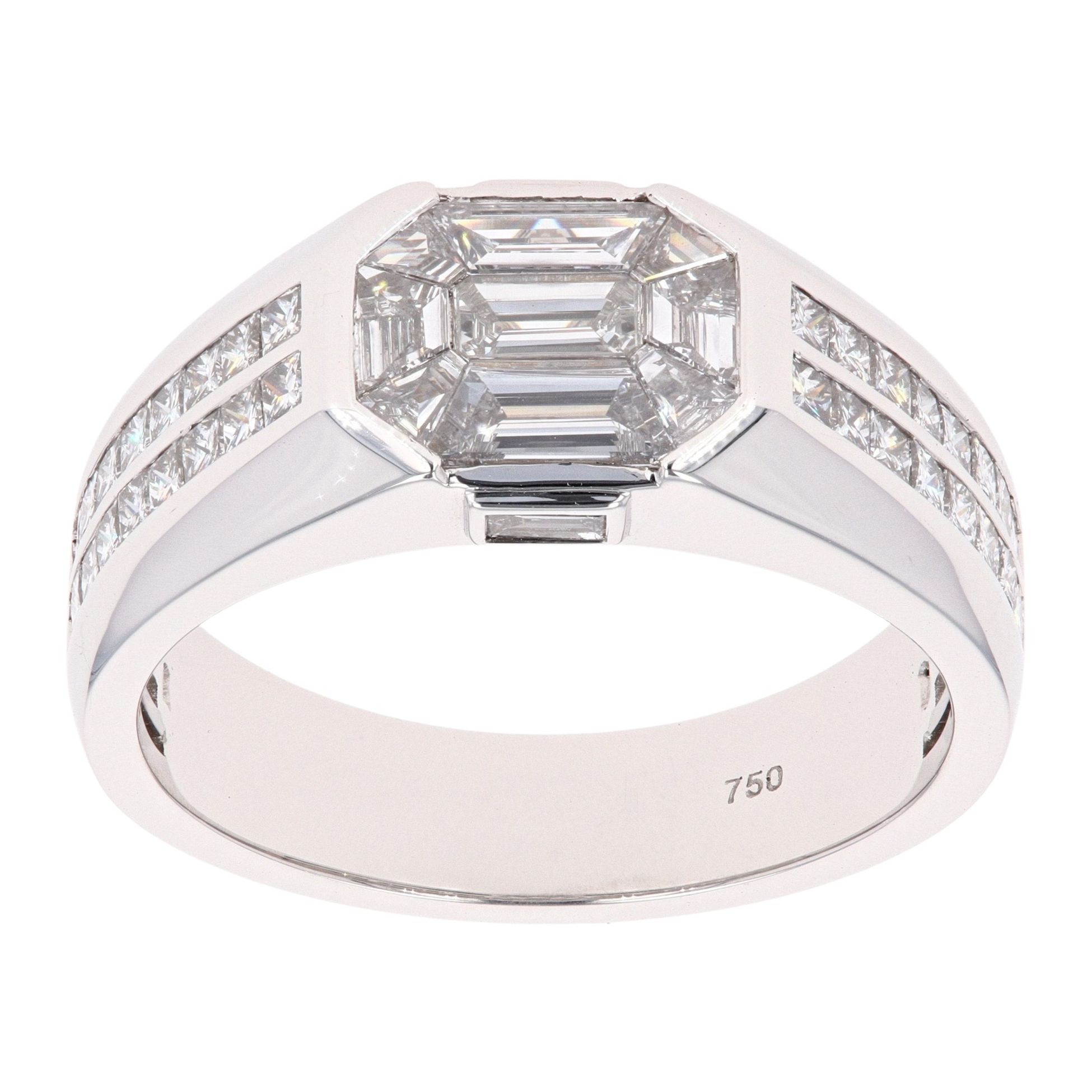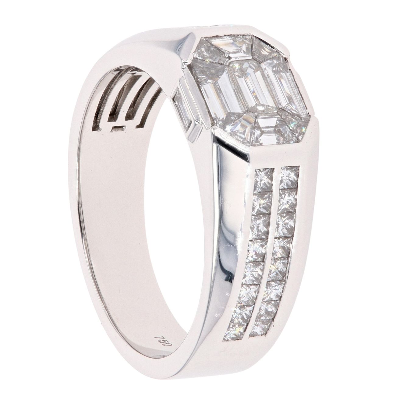 18ct White Gold 1.87ct Pie And Princess Cut Two Row Diamond Ring
