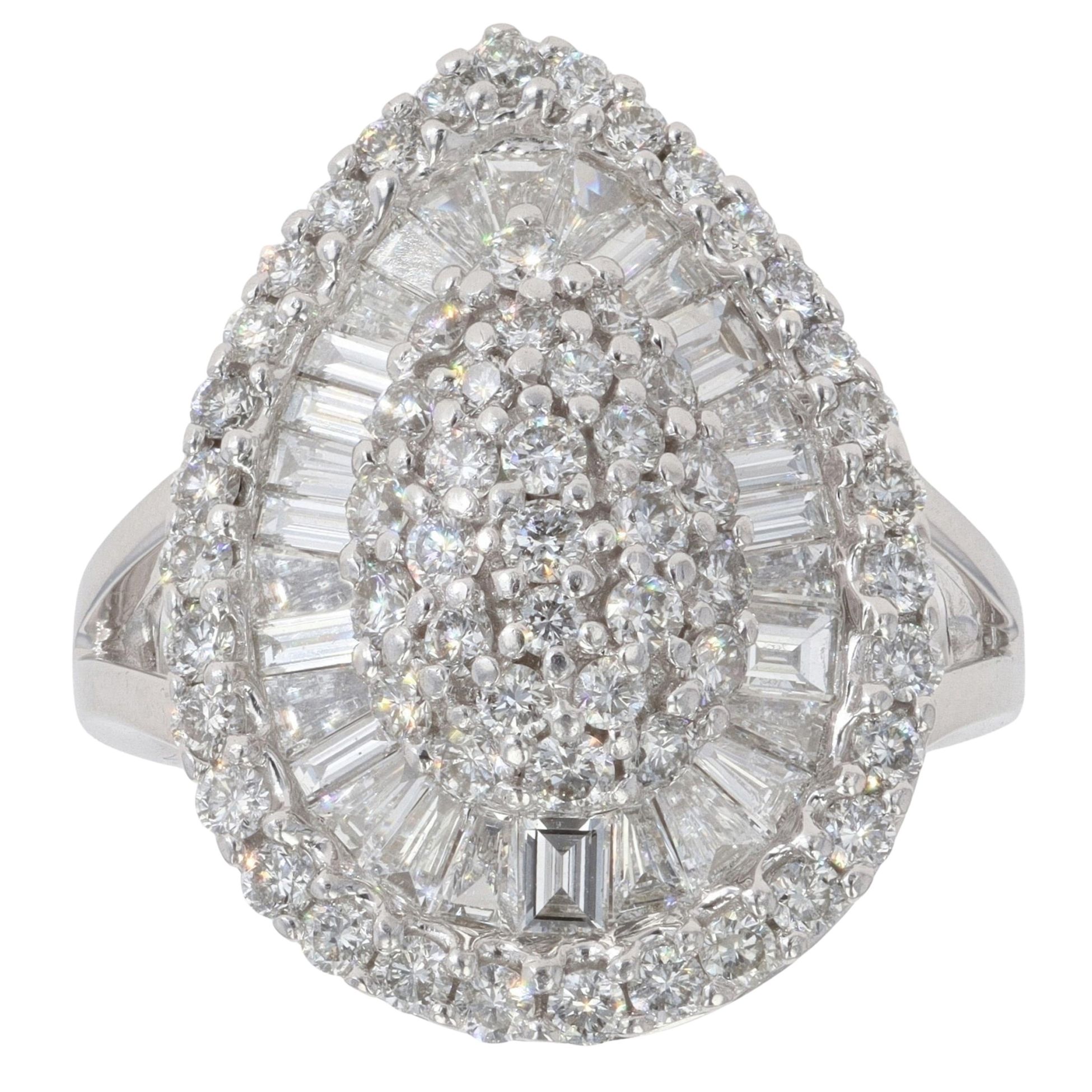18ct White Gold 2.00ct Baguette and Brilliant Cut Cluster Ring