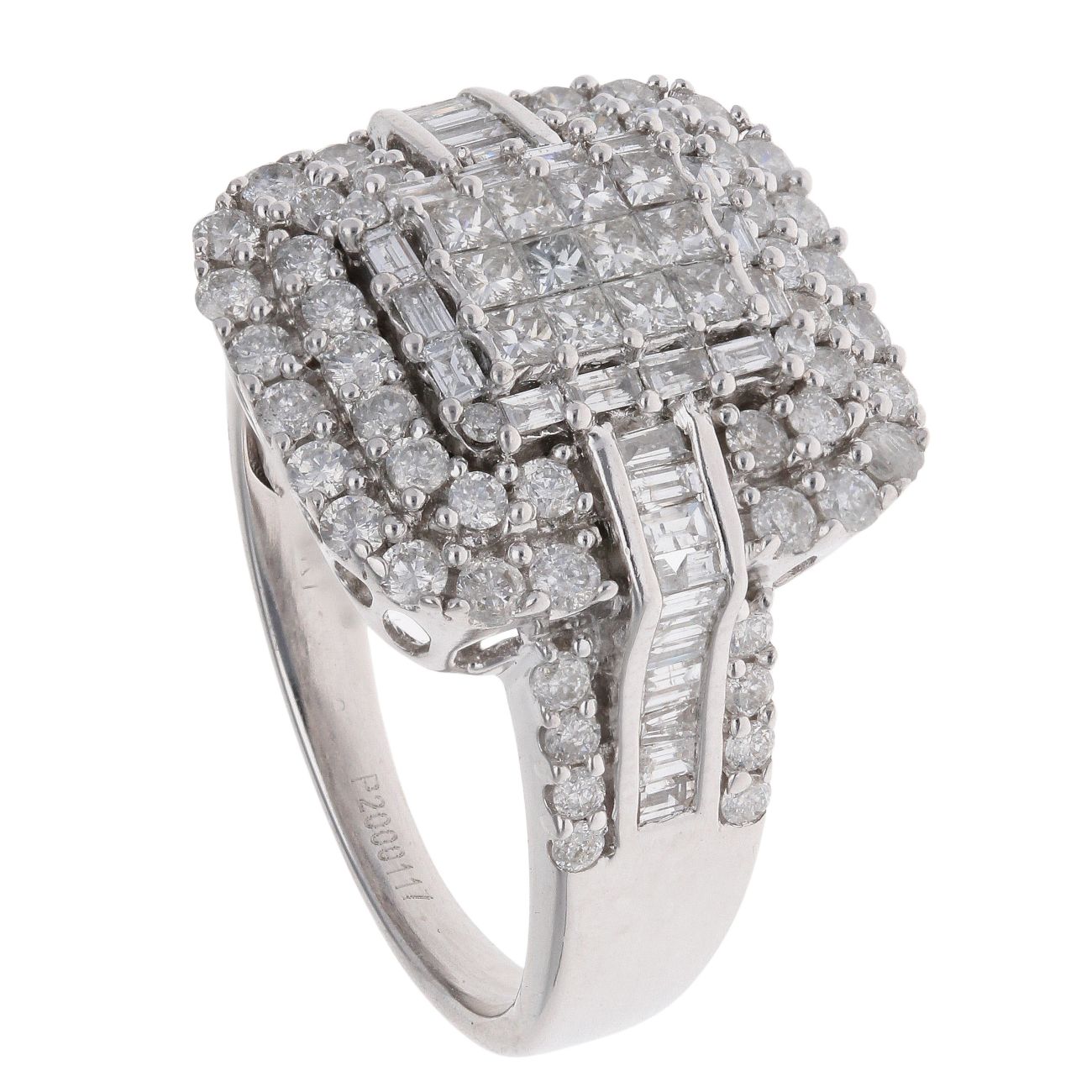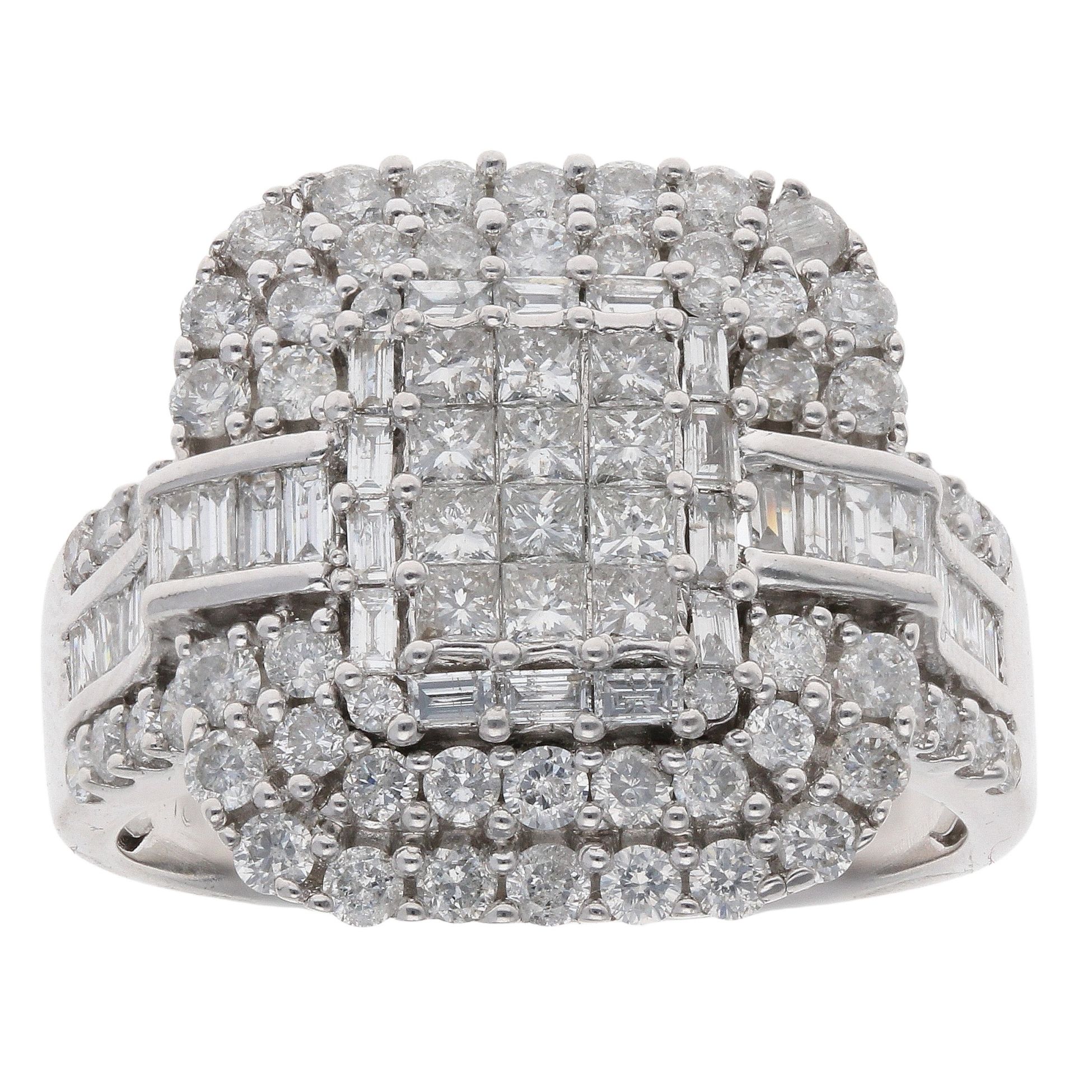 18ct White Gold 2.00ct Princess, Baguette and Brilliant Cut Cluster Ring