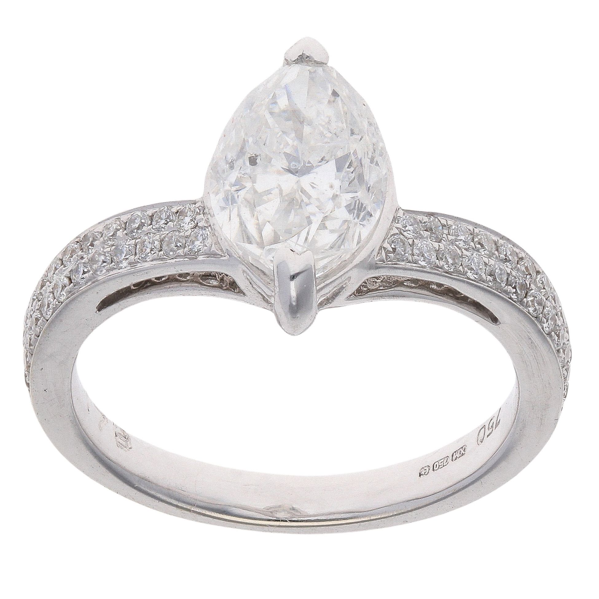 18ct White Gold 2.18ct Marquise And Brilliant Cut Diamond Solitaire Ring