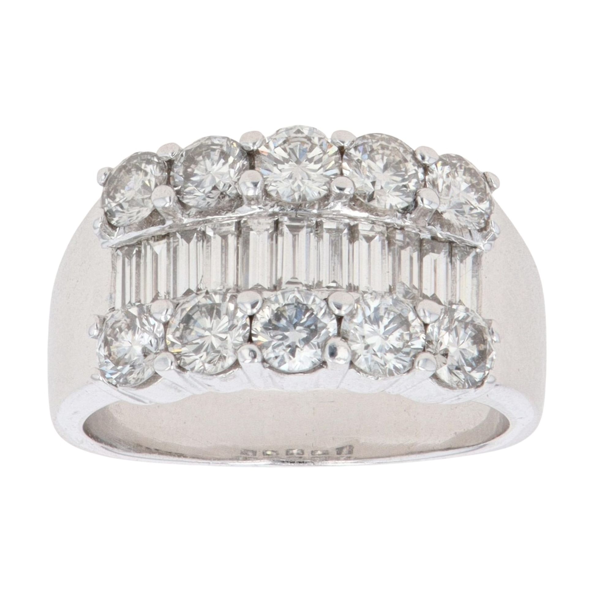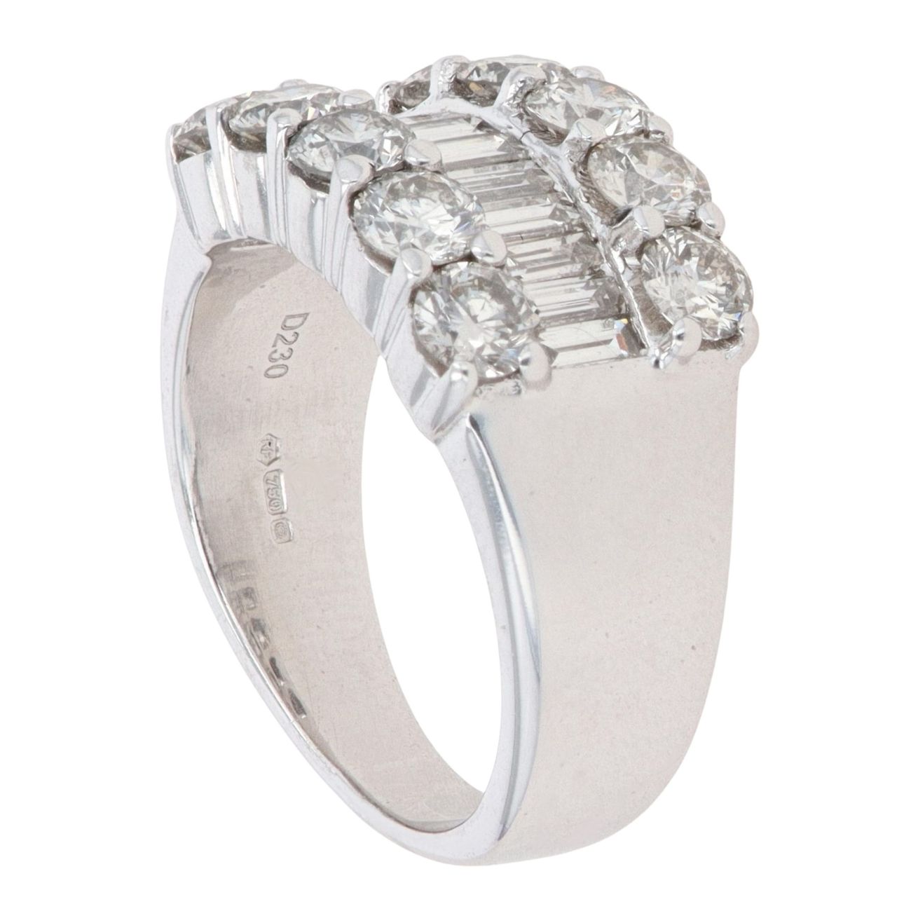 18ct White Gold 2.20ct Brilliant And Baguette Cut Diamond Cluster Ring
