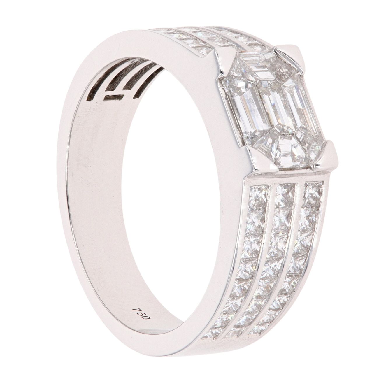 18ct White Gold 2.28ct Pie And Princess Cut Three Row Diamond Ring