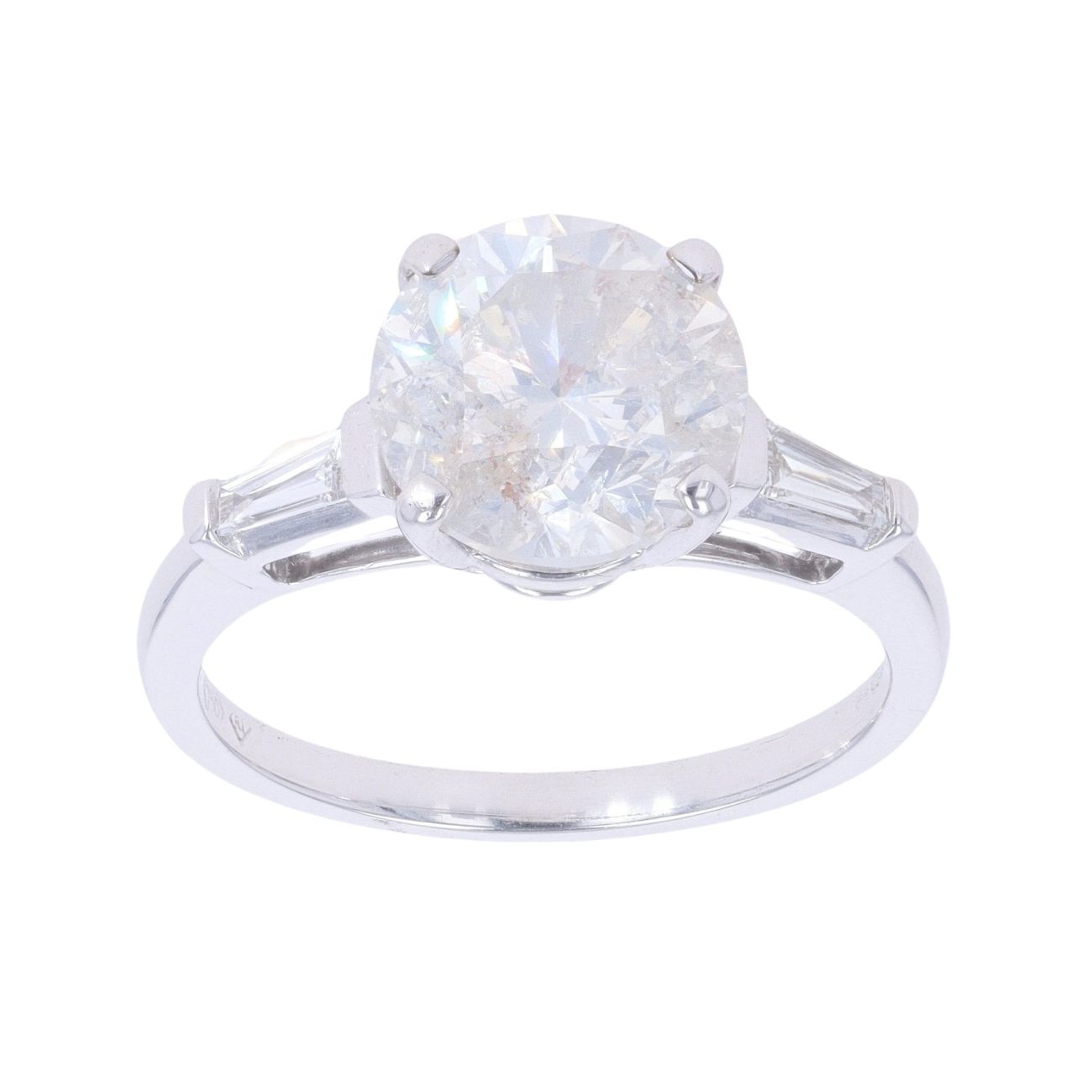 18ct White Gold 3.00ct Brilliant And Baguette Cut Solitaire Ring