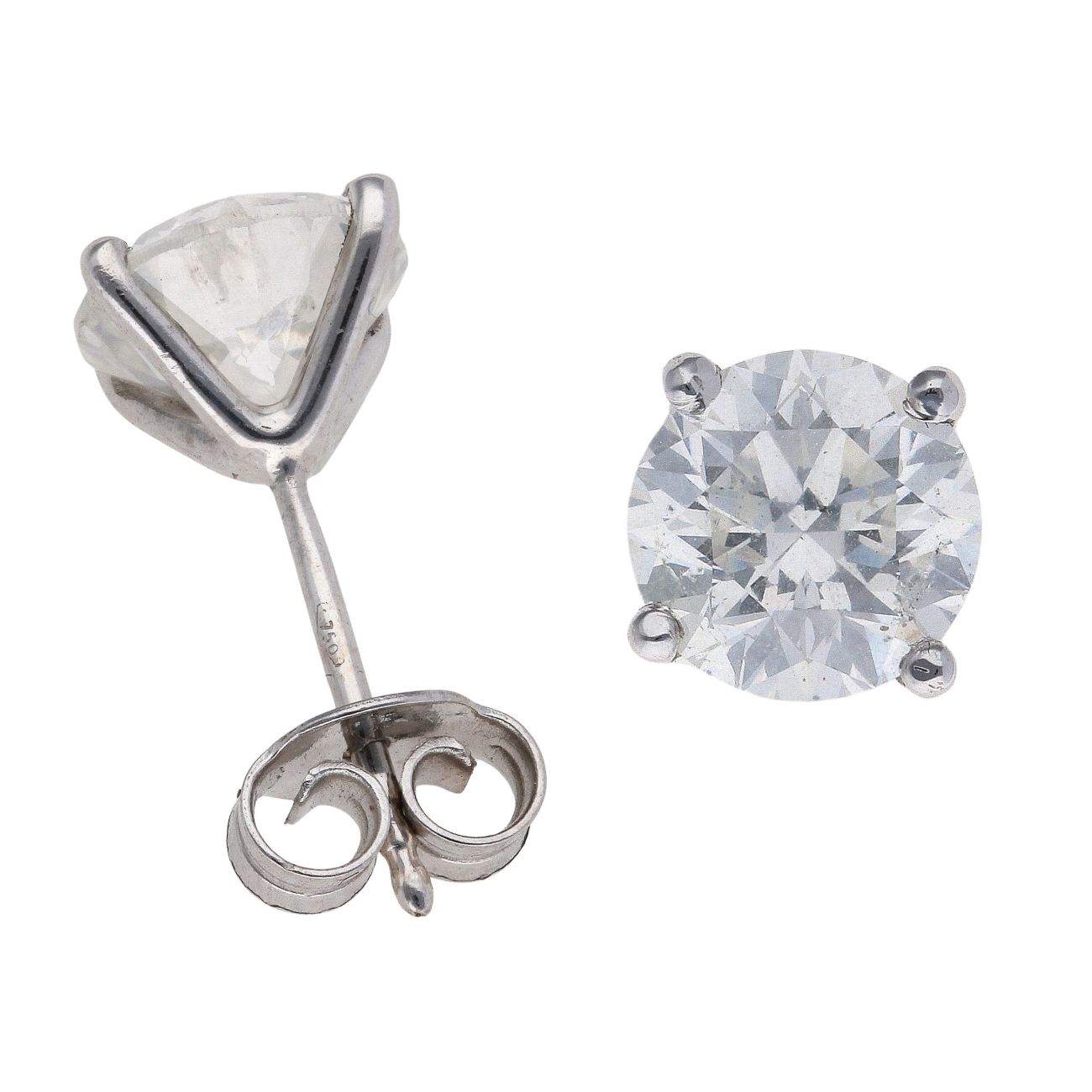 18ct White Gold 3.17ct Diamond Solitaire Stud Earrings