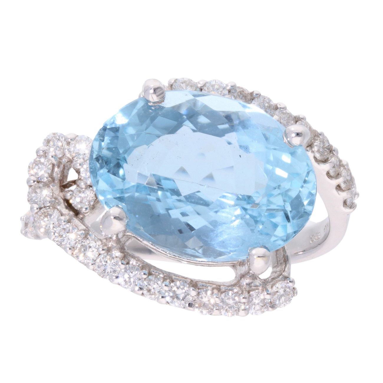 18ct White Gold Aquamarine and 0.66ct Diamond Ring
