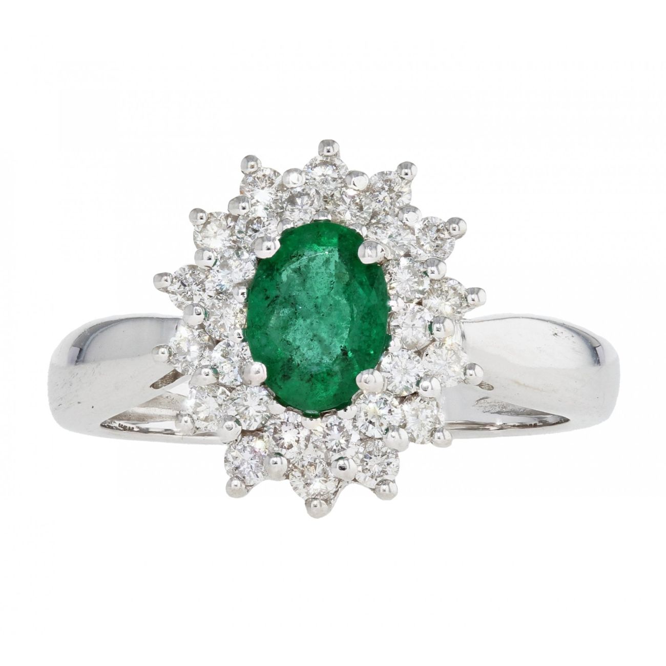 18ct White Gold Diamond And Emerald Cluster Ring