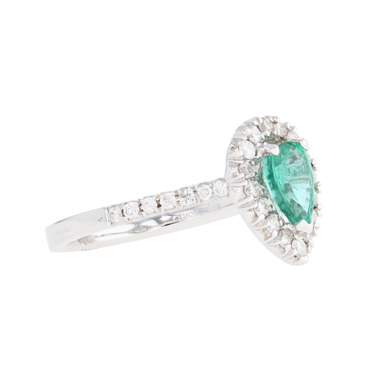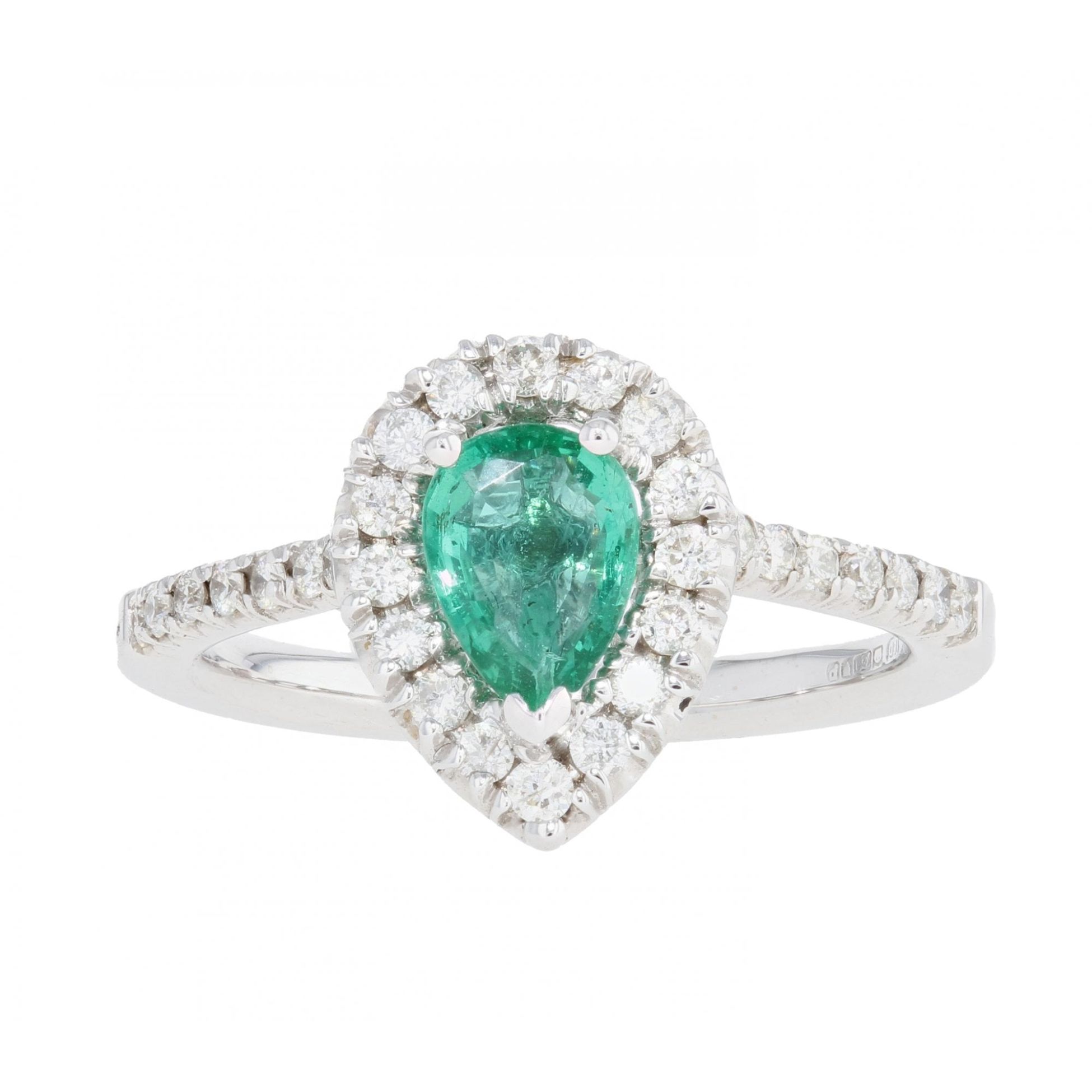 18ct White Gold Diamond And Emerald Pear Shape Cluster Ring
