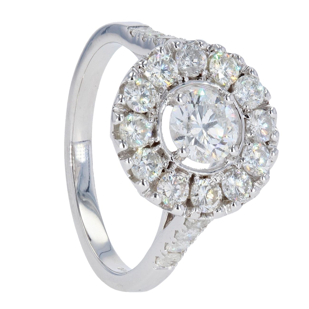 18ct White Gold Est 1.70cts Diamond Halo Cluster Ring by Anya Belle