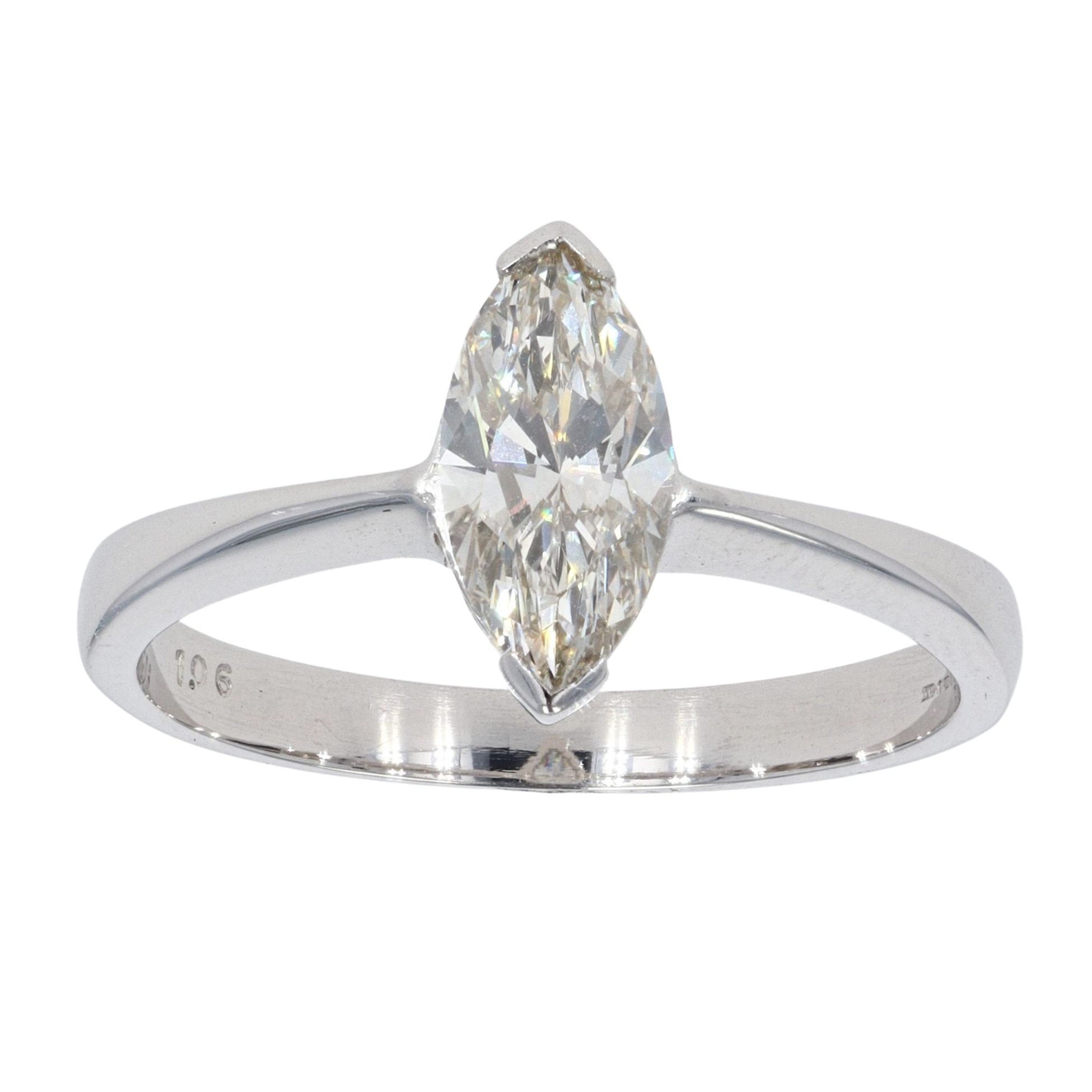 18ct White Gold Marquise Cut 1.06ct Diamond Solitaire Ring