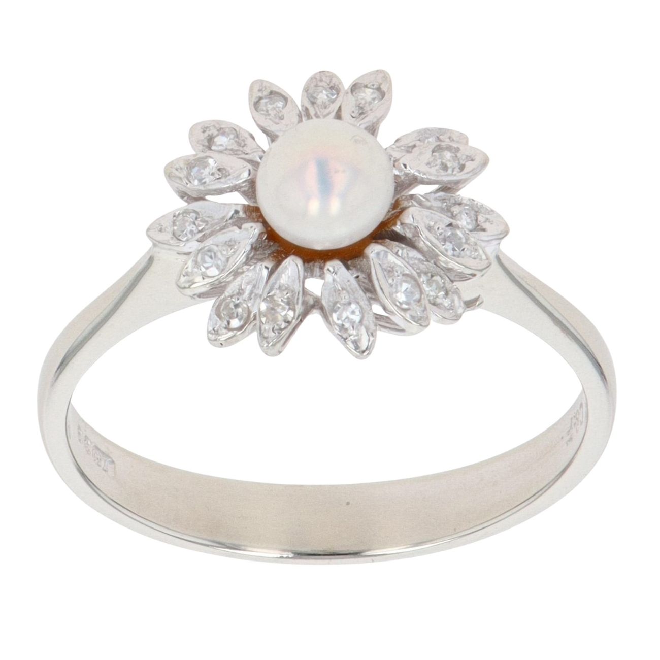 18ct White Gold Pearl and Cubic Zirconia Flower Ring