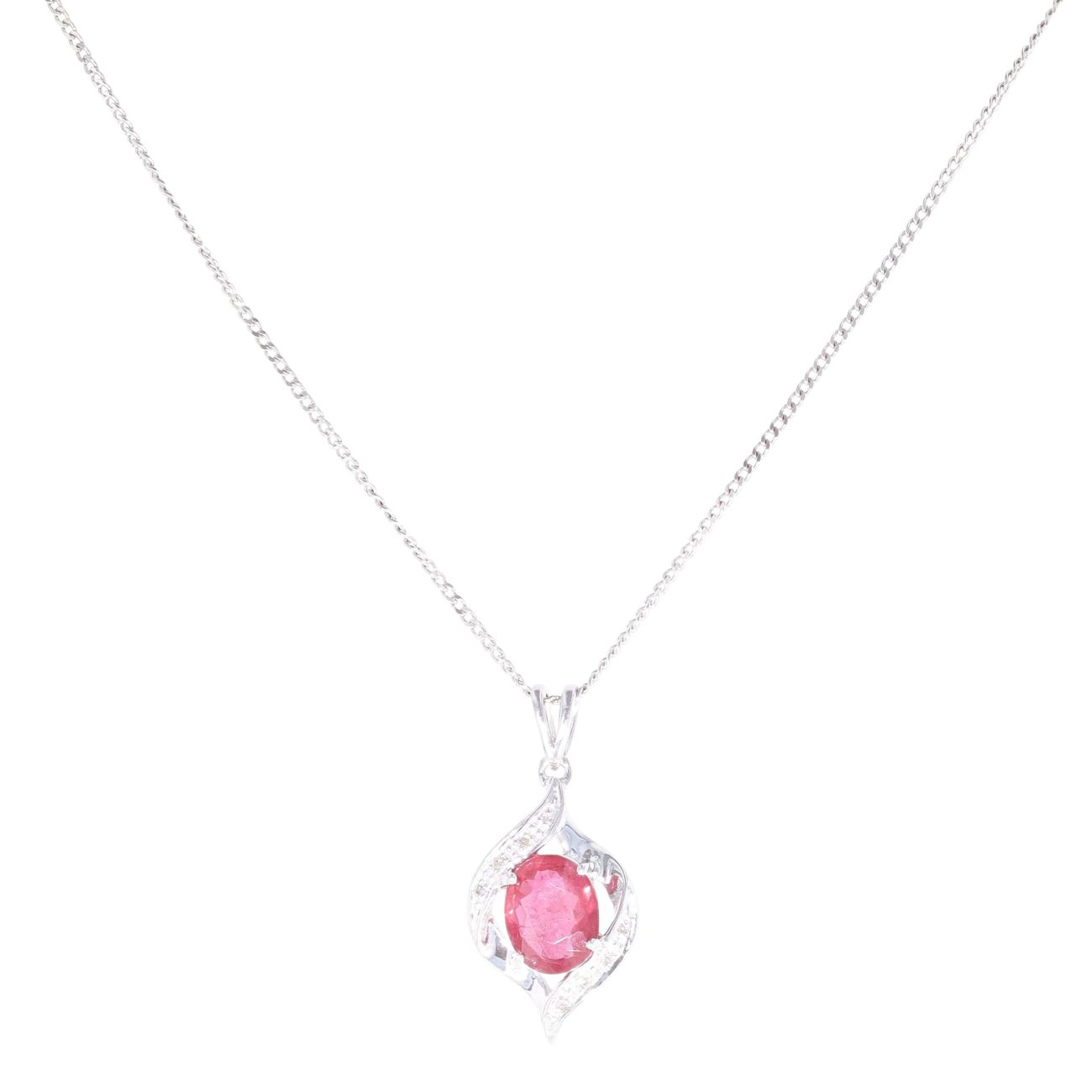 18ct White Gold Ruby and 0.05ct Diamond Pendant and Chain 18"
