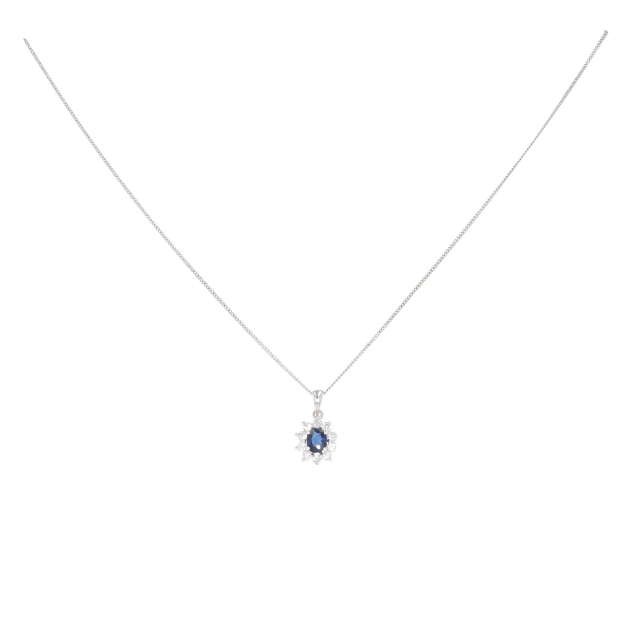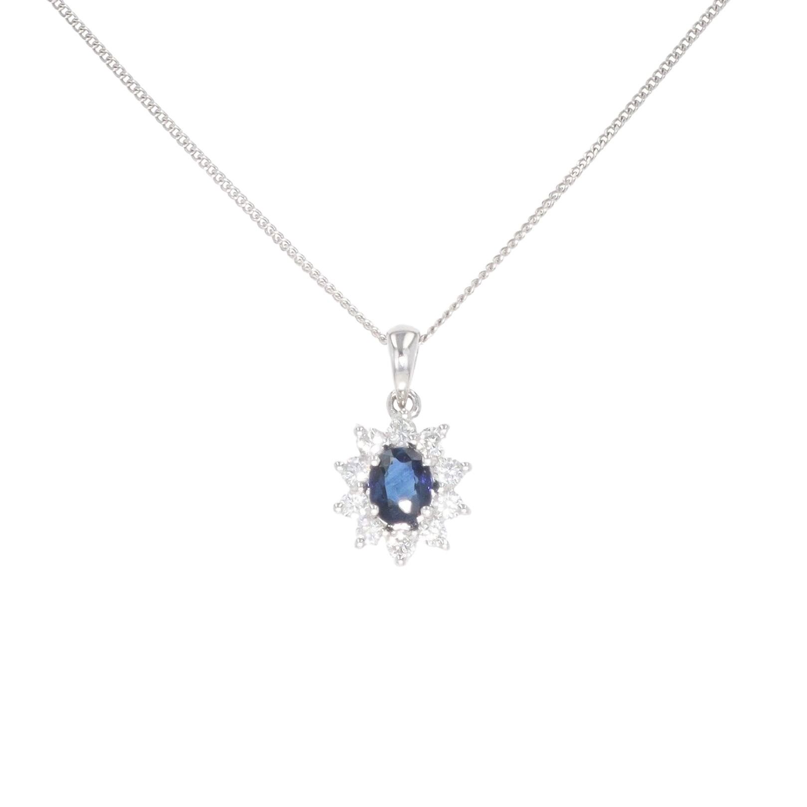 18ct White Gold Sapphire And 0.25ct Diamond Cluster Pendant And Chain 16"