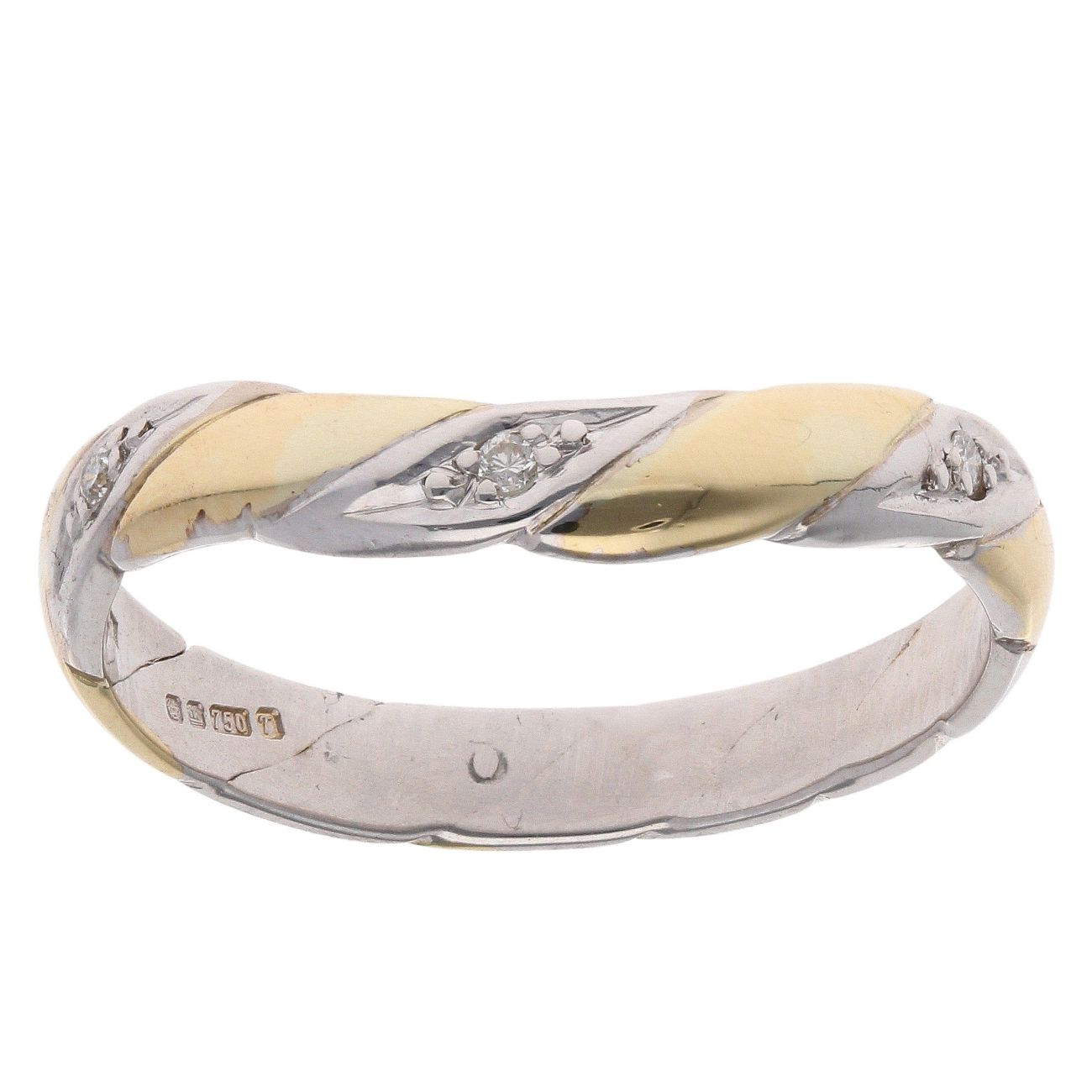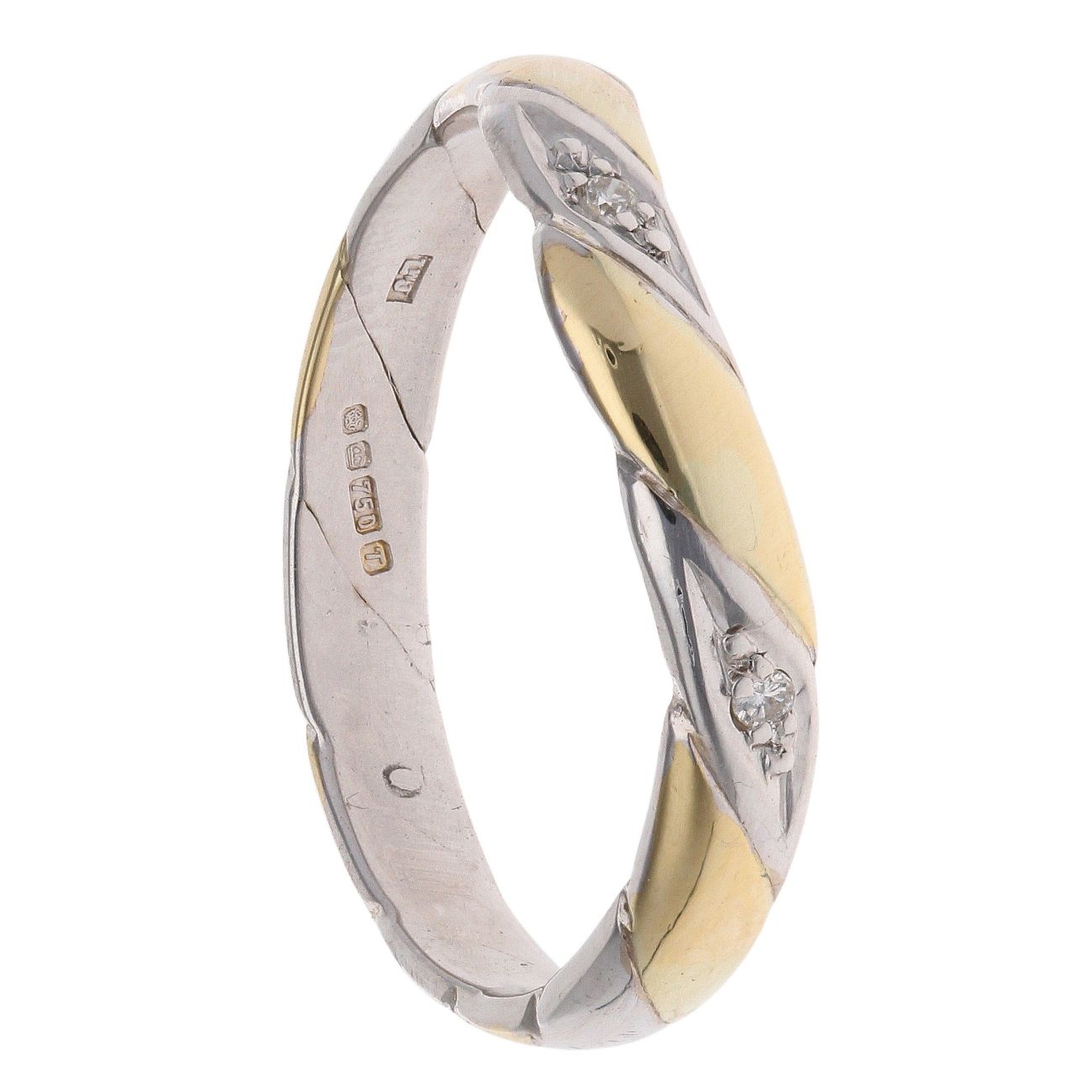 18ct Yellow and White Gold 0.03ct Diamond Wishbone Ring
