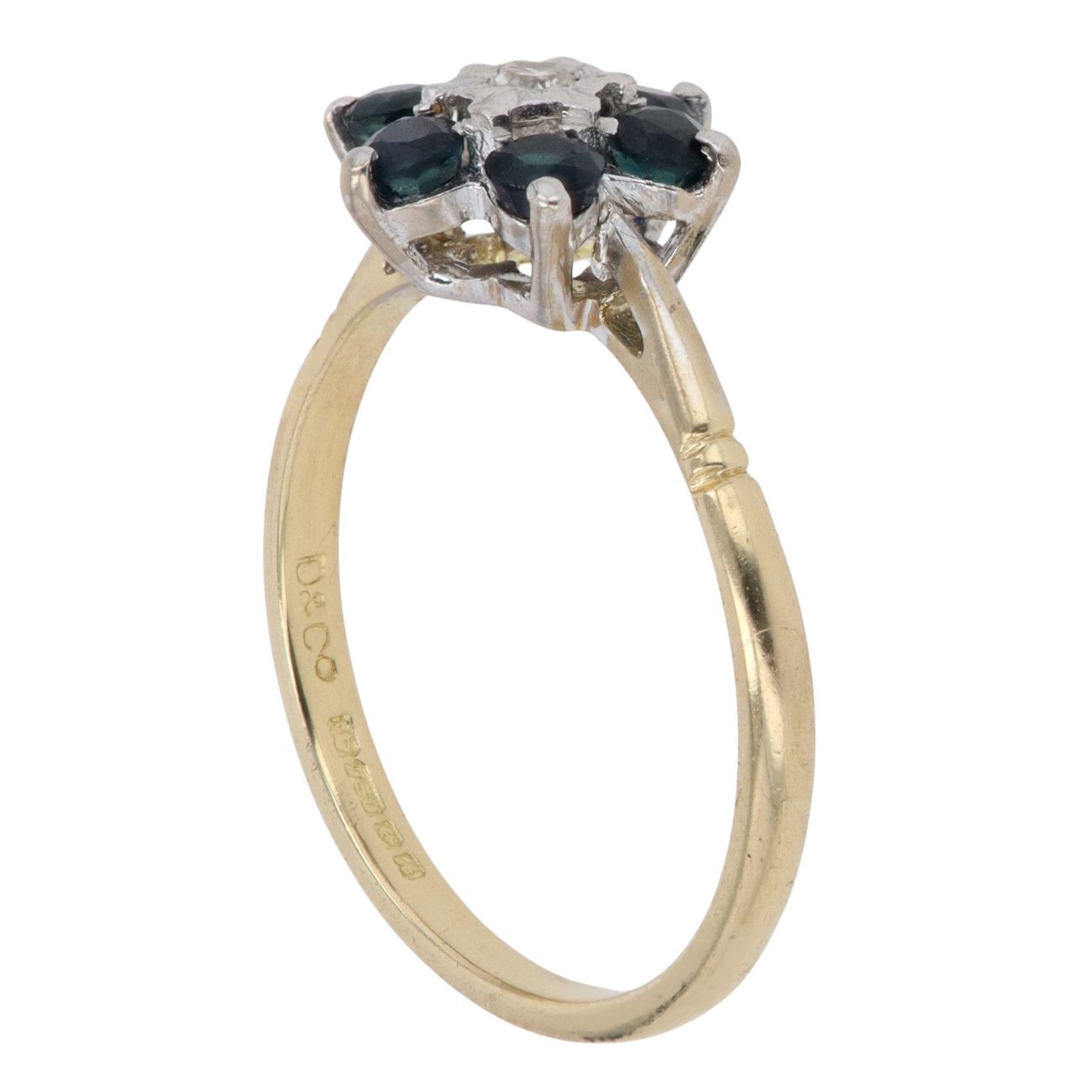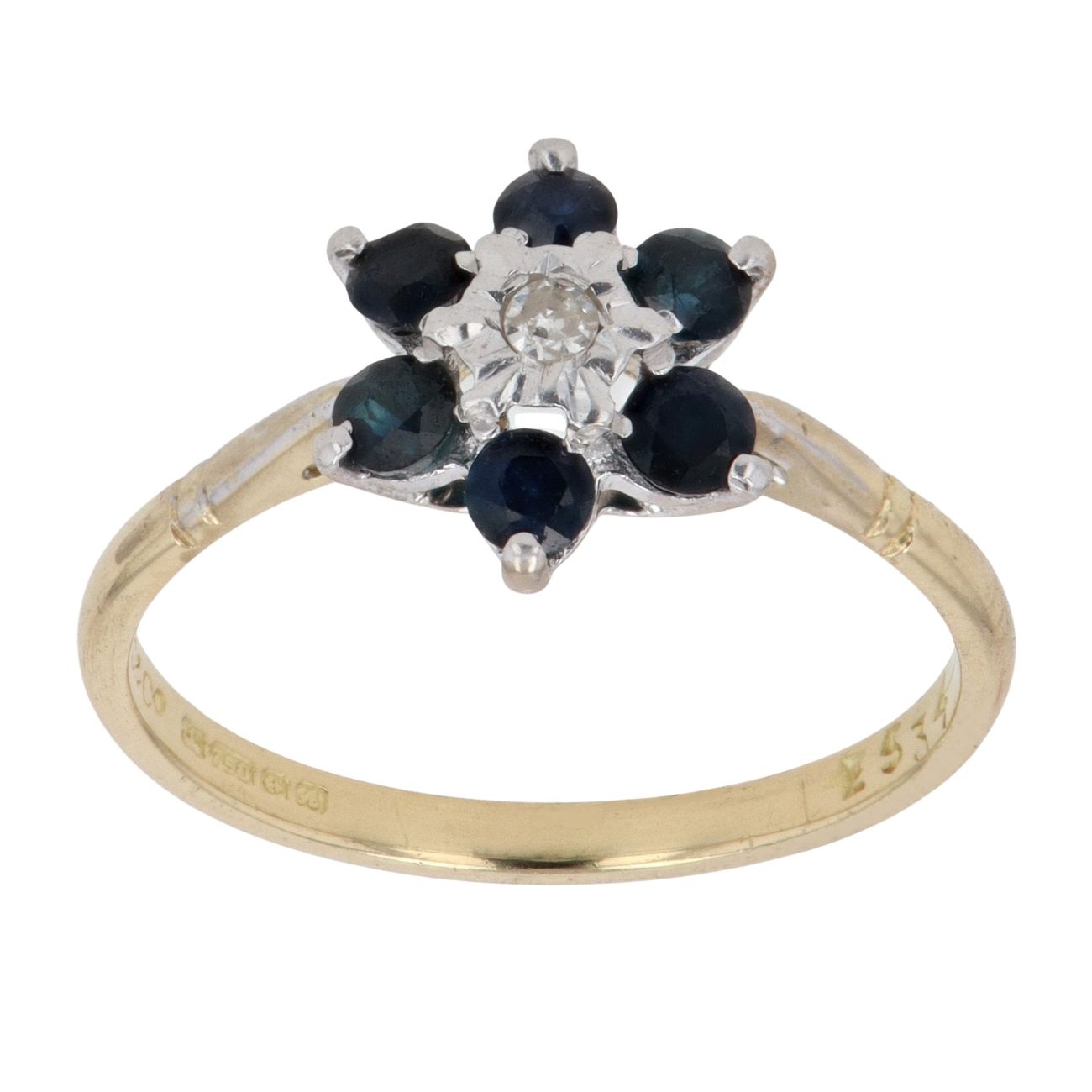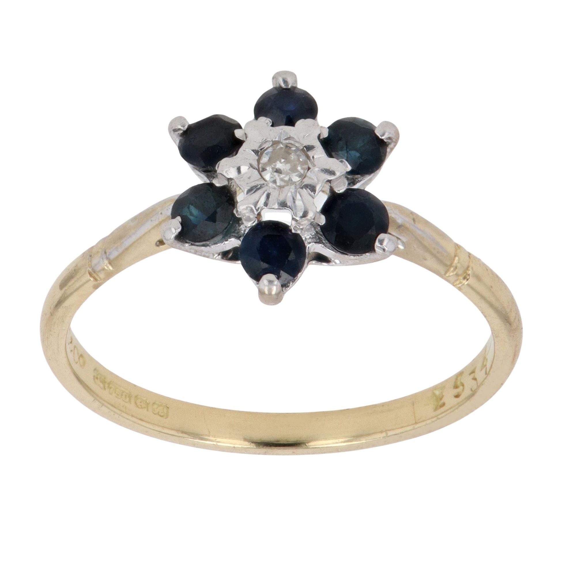 18ct Yellow And White Gold 0.05ct Diamond And Sapphire Cluster Ring